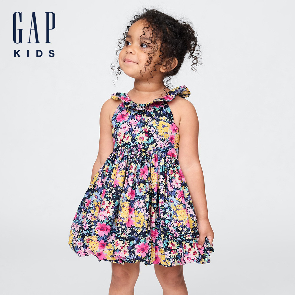Gap 女幼童裝 純棉印花圓領吊帶洋裝-碎花圖案(785648)90cm(1-2歲)|100cm(2-3歲)|110cm(4-5歲)|110cm(5歲)DressesGap官方旗艦店