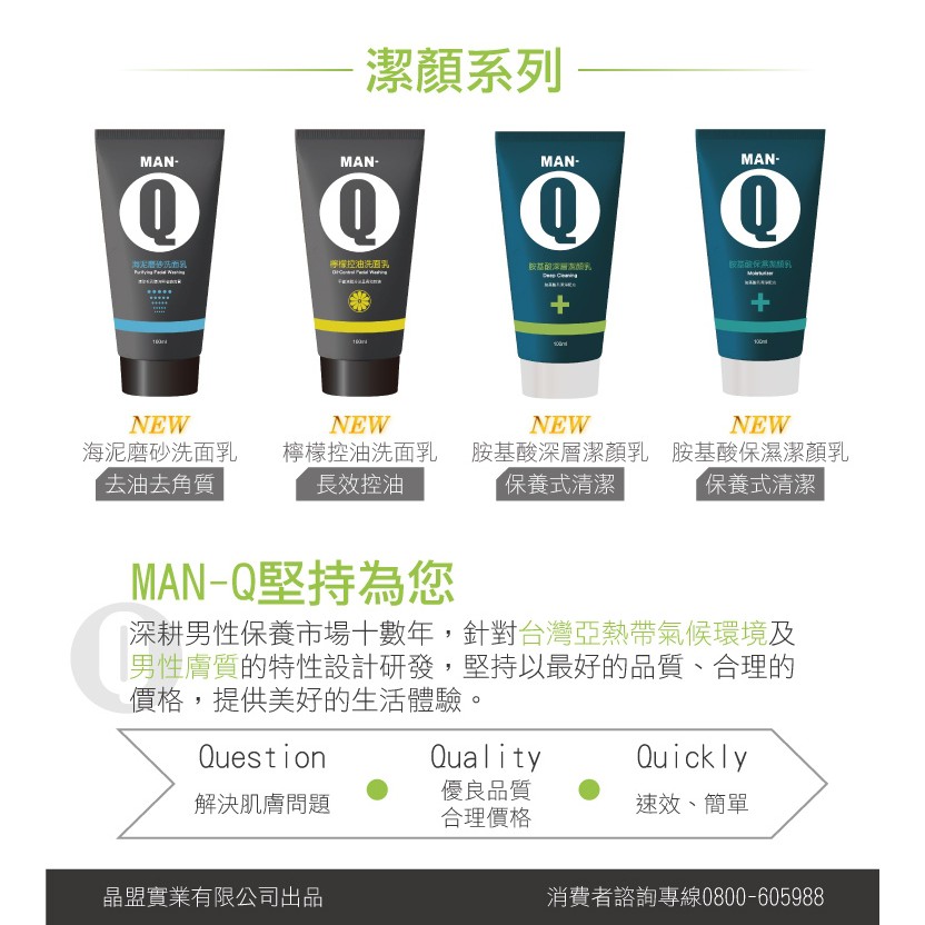 MAN-Q 胺基酸深層潔顏乳 (100ml) 溫和洗淨肌膚 洗面乳 三大植萃淨化因子 五大水嫩精華 溫和洗淨MAN-Q 胺基酸深層潔顏乳 (100ml) 溫和洗淨肌膚 洗面乳 三大植萃淨化因子 五大水嫩精華 溫和洗淨Facial CleanserMAN-Q專業男士保養清潔品牌-官方正品公司貨