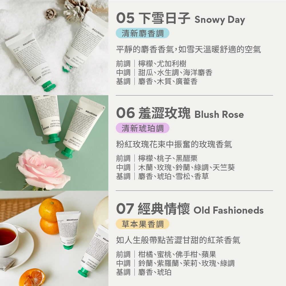 INNISFREE 我的香氛護手霜 30ml 官方旗艦店#2 粉紅澎澎 30ml|#3 蜜桃氣泡 30ml|#4 跳舞雛菊 30ml|#5 下雪日子 30ml|#6 羞澀玫瑰 30ml|#7 經典情懷 30ml|#1 白色襯衫 30mlHand CareINNISFREE 官方旗艦店