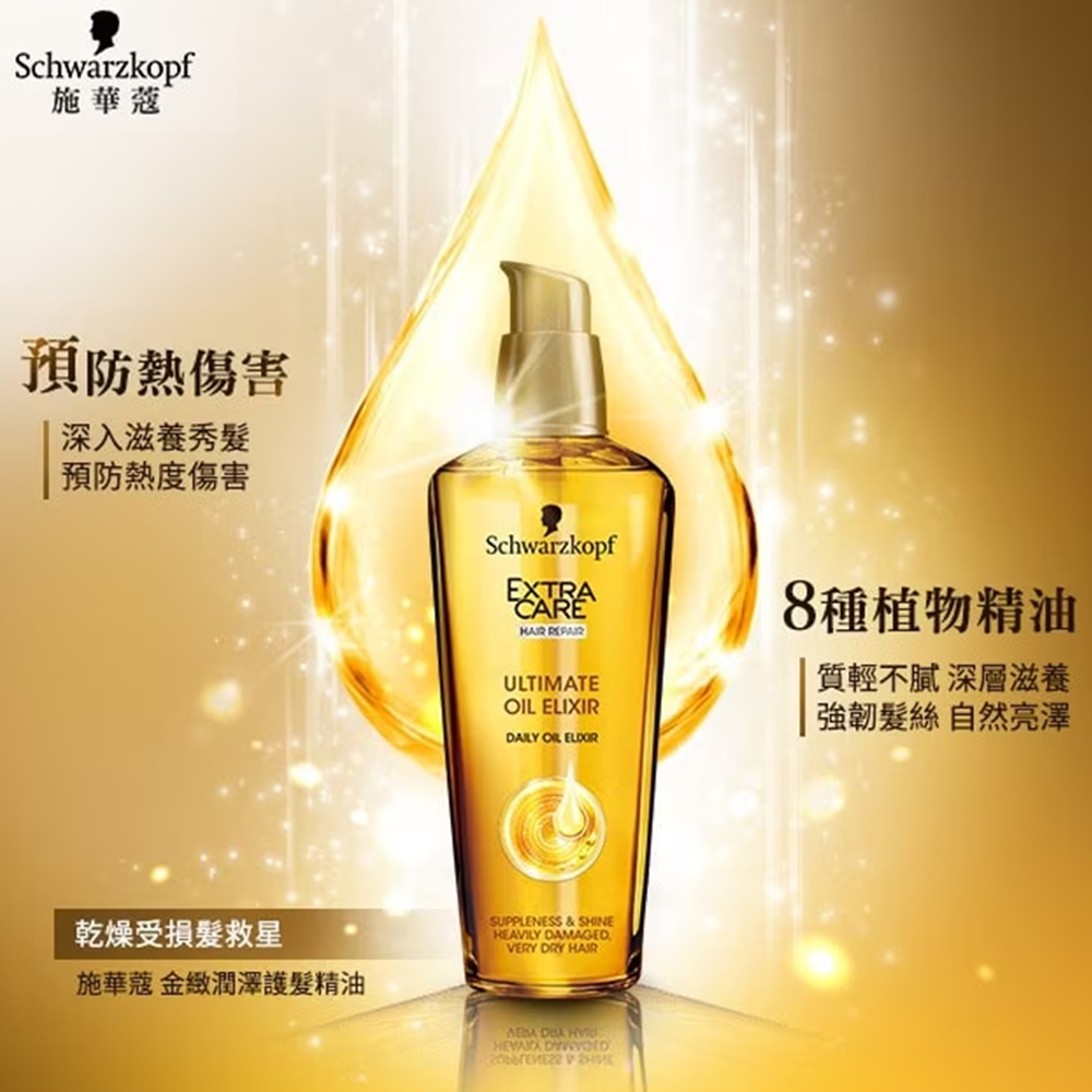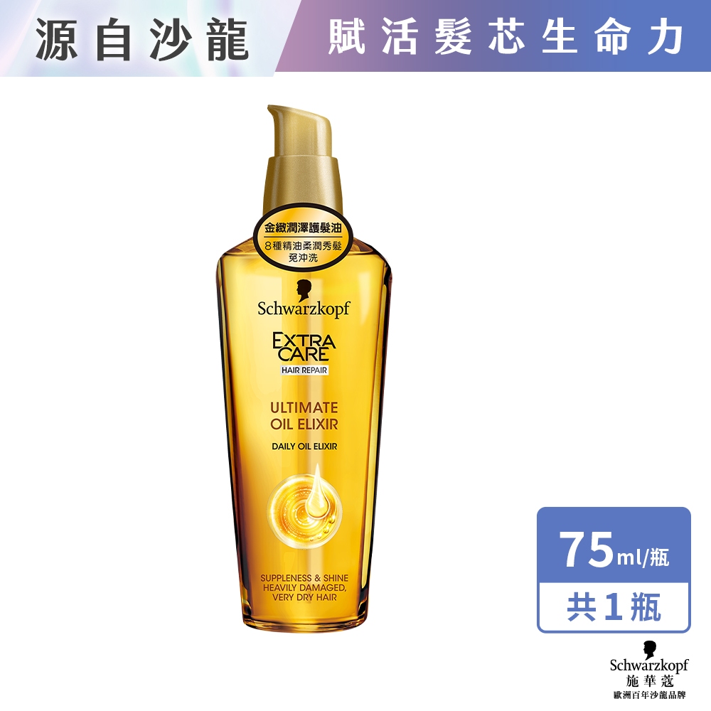 【施華蔻】ExtraCare金緻潤澤護髮精油75ml 單入/2入組 |漢高官方直營店金緻潤澤護髮精油75ml 2入組|金緻潤澤護髮精油75mlHair TreatmentHenkel漢高旗艦店-Persil寶瀅/Pril洗碗精/Bref馬桶球/威滅