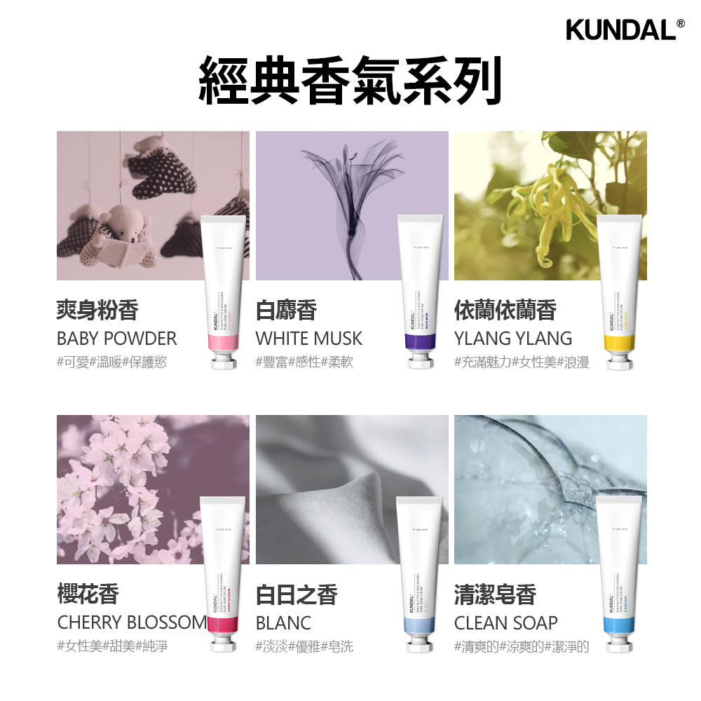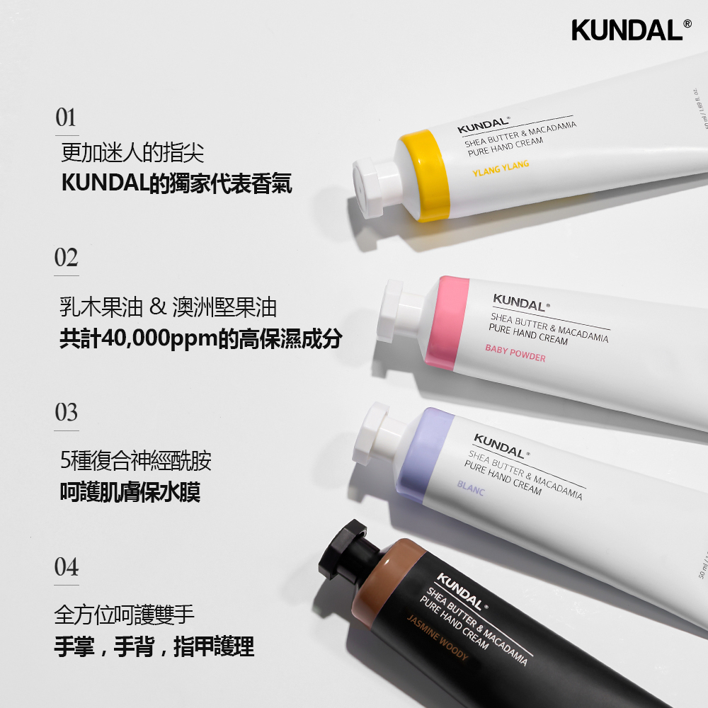 韓國【KUNDAL昆黛爾】乳木果油澳洲堅果滋潤護手霜50ml白日之香|白麝香|羅勒與柑橘香|茉莉木草香|法式薰衣草香|爽身粉香Hand CareKUNDAL昆黛爾 台灣官方旗艦店