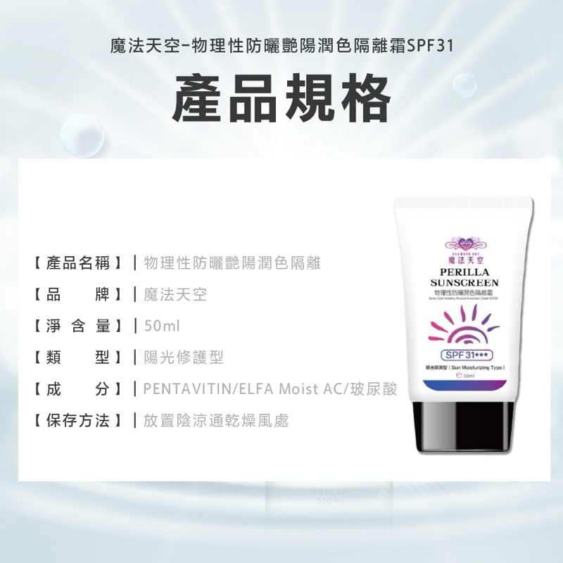 【魔法天空】 物理性防曬潤色隔離霜SPF31陽光保濕型50g 豔陽潤色系列 純物理性防曬保濕修護潤色持久安全隔離霜【魔法天空】 物理性防曬潤色隔離霜SPF31陽光保濕型50g 豔陽潤色系列 純物理性防曬保濕修護潤色持久安全隔離霜FaceGlamour Sky 魔法天空專賣店