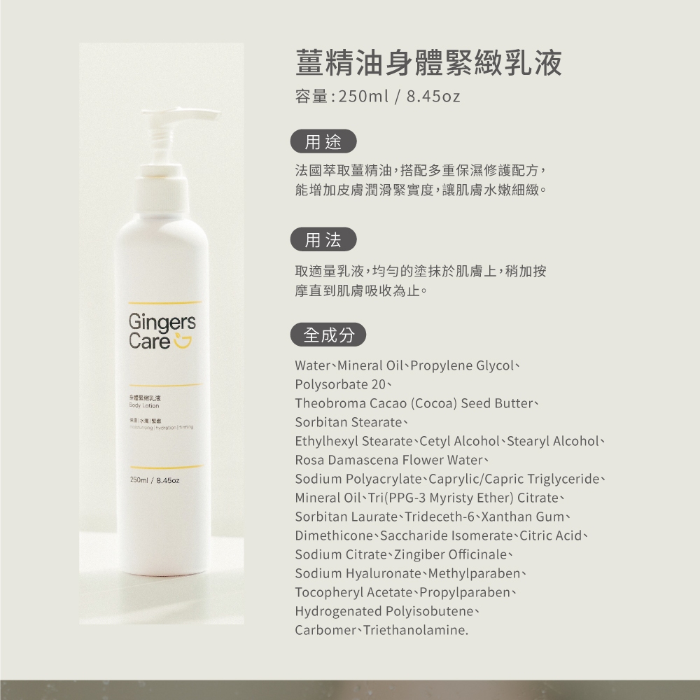 【Gennies 奇妮】Gingers Care 薑精油身體緊緻乳液250ml 告別乾癢肌 清爽保濕 乳液 身體乳薑精油身體乳Body Cream, Lotion & ButterGennies 奇妮孕哺(官方旗艦店)