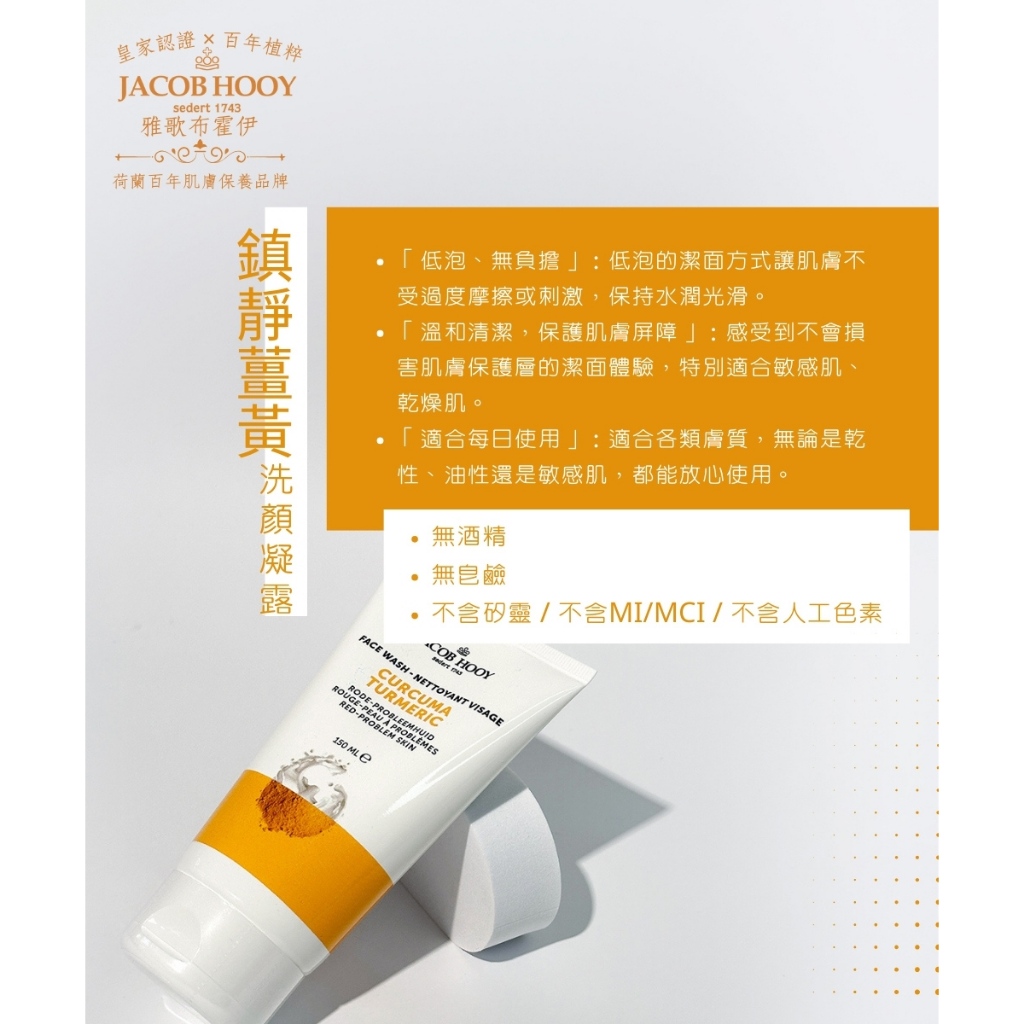 JACOB HOOY【鎮靜薑黃洗顏凝露150ml】洗臉凝露 植粹洗顏露 敏弱肌洗顏 舒緩鎮靜 無添加 雅歌布霍伊JACOB HOOY【鎮靜薑黃洗顏凝露150ml】洗臉凝露 植粹洗顏露 敏弱肌洗顏 舒緩鎮靜 無添加 雅歌布霍伊Facial CleanserJACOB HOOY 雅歌布霍伊 台灣官方旗艦店
