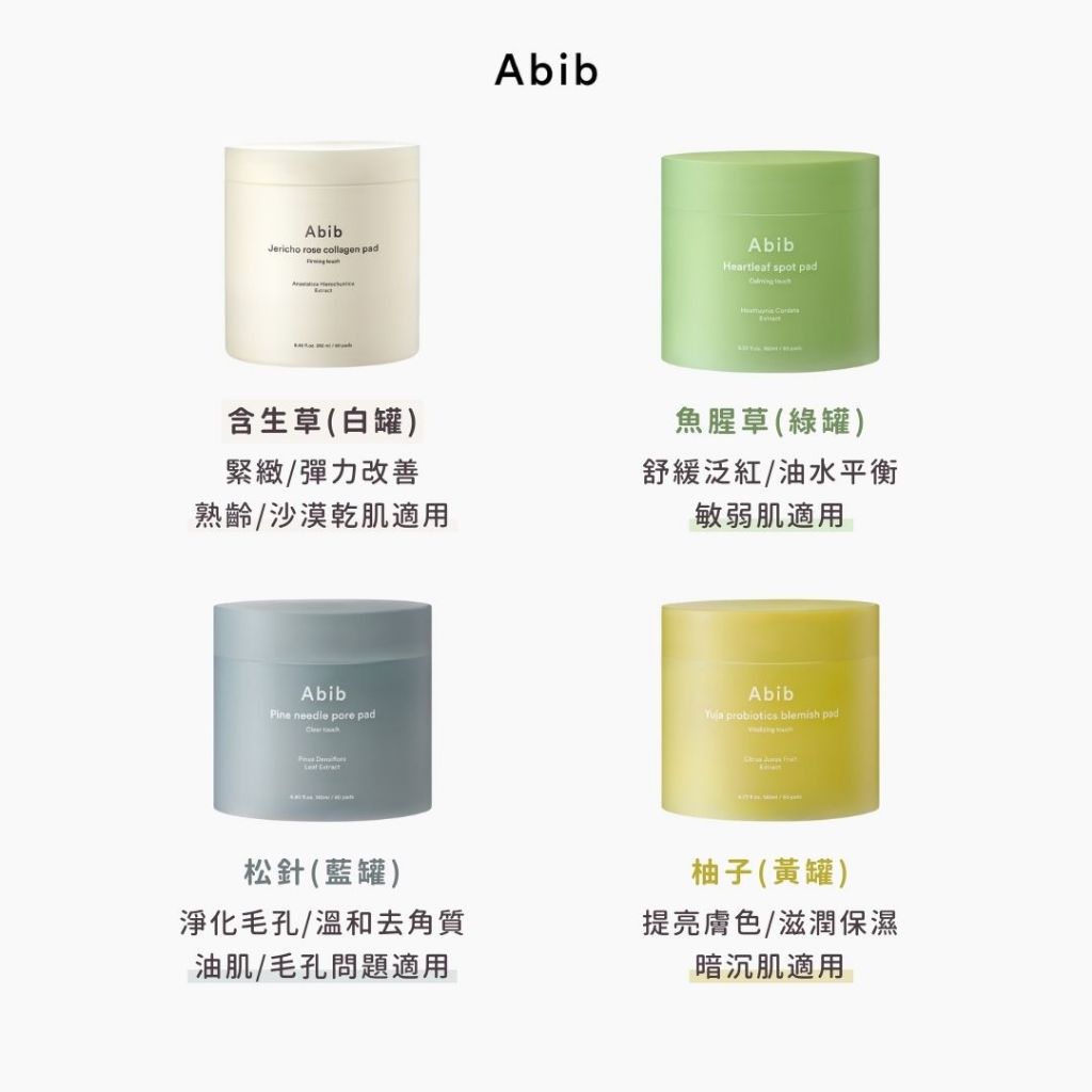 【Abib】魚腥草鎮定舒緩/松針毛孔緊緻/柚子亮白棉片 (120/140/145ml) | HelpBuyKr商城旗艦館魚腥草鎮定舒緩棉片(綠)|松針毛孔緊緻棉片(藍) 26年4月|柚子亮白棉片(黃)|含生草膠原蛋白棉片(白)|麩胱甘肽淡斑維他命(橘)|LHA 毛孔清潔棉片(薄荷綠)Makeup AccessoriesHelpBuyKr商城旗艦館