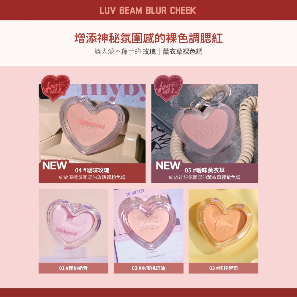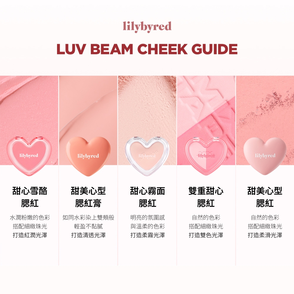 lilybyred 新色上市 甜美心型腮紅膏 3.5g好評回歸❤️🔥 07 紅潤光|全新上市🆕 13 羞澀光|01 甜美光|熱銷🥇 02 清純光|03 感性光|04 心動光|熱銷🥉 05 心機光|熱銷🥈 06 蜜桃光|08 悸動光|09 狂熱光|10 葡萄光|💧 11 暖桃光|💧 12 裸粉光|迷你鑰匙圈腮紅膏 08 悸動光 1.6g|迷你鑰匙圈腮紅膏 蜜桃光1.6g(停產)|迷你鑰匙圈腮紅膏 葡萄光1.6g(停產)Facelilybyred 官方旗艦店
