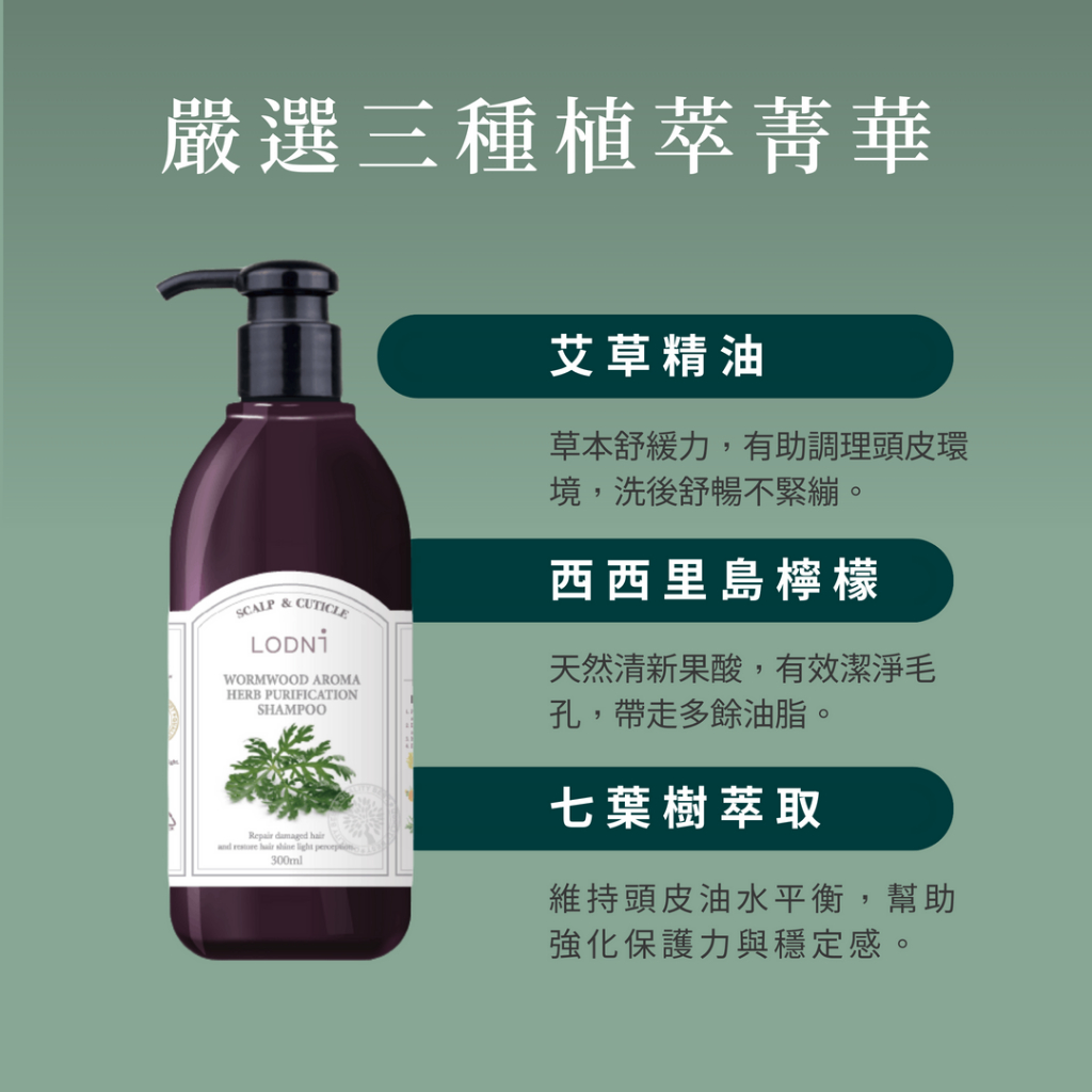 【LODNI蘿德妮】青檸艾草淨化洗髮精(300 ml )|油性頭皮 深層清潔 涼感配方300mlShampooLODNI蘿德妮 官方旗艦店