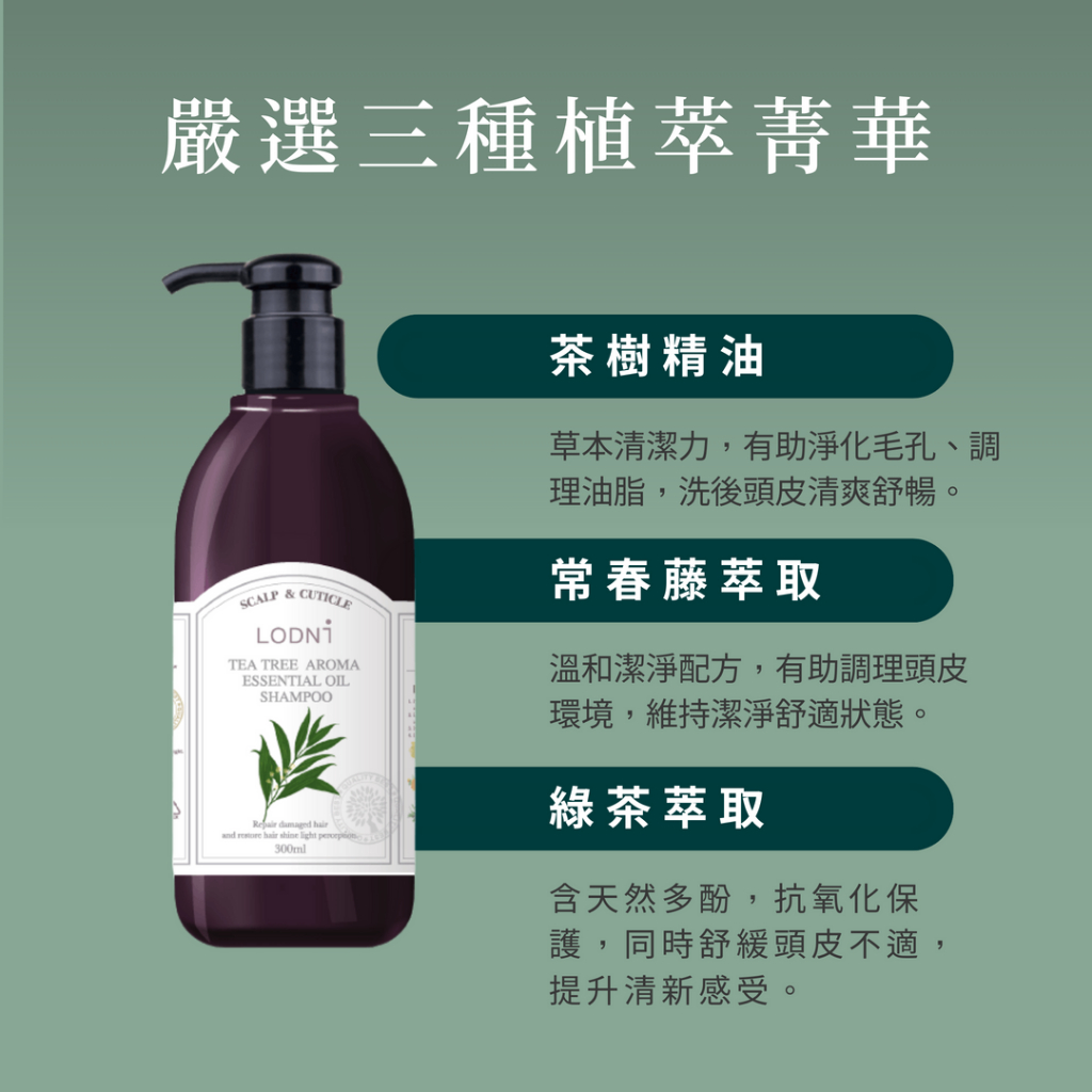 【LODNI蘿德妮】茶樹精油洗髮精(300 ml)|油性頭皮 收斂控油 頭皮清爽300mlShampooLODNI蘿德妮 官方旗艦店