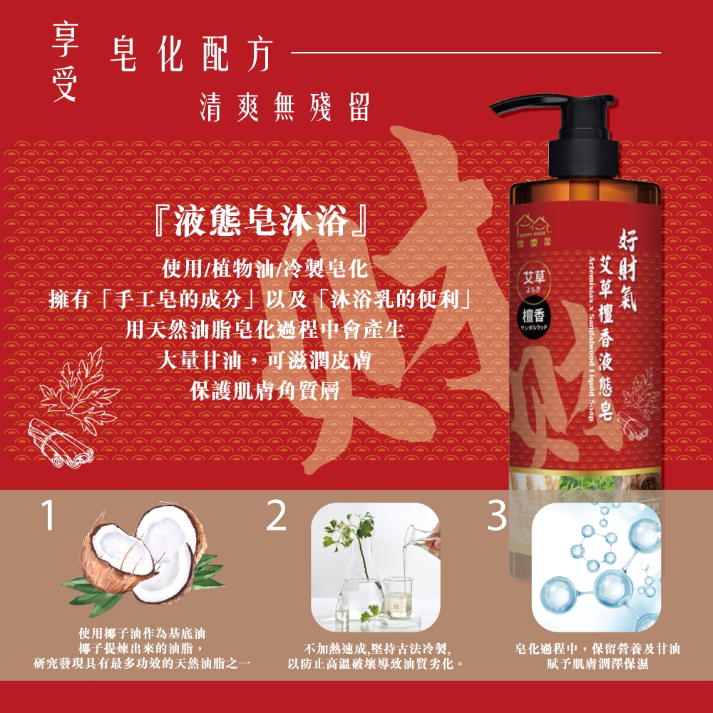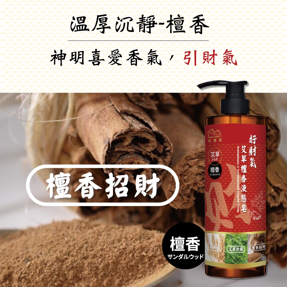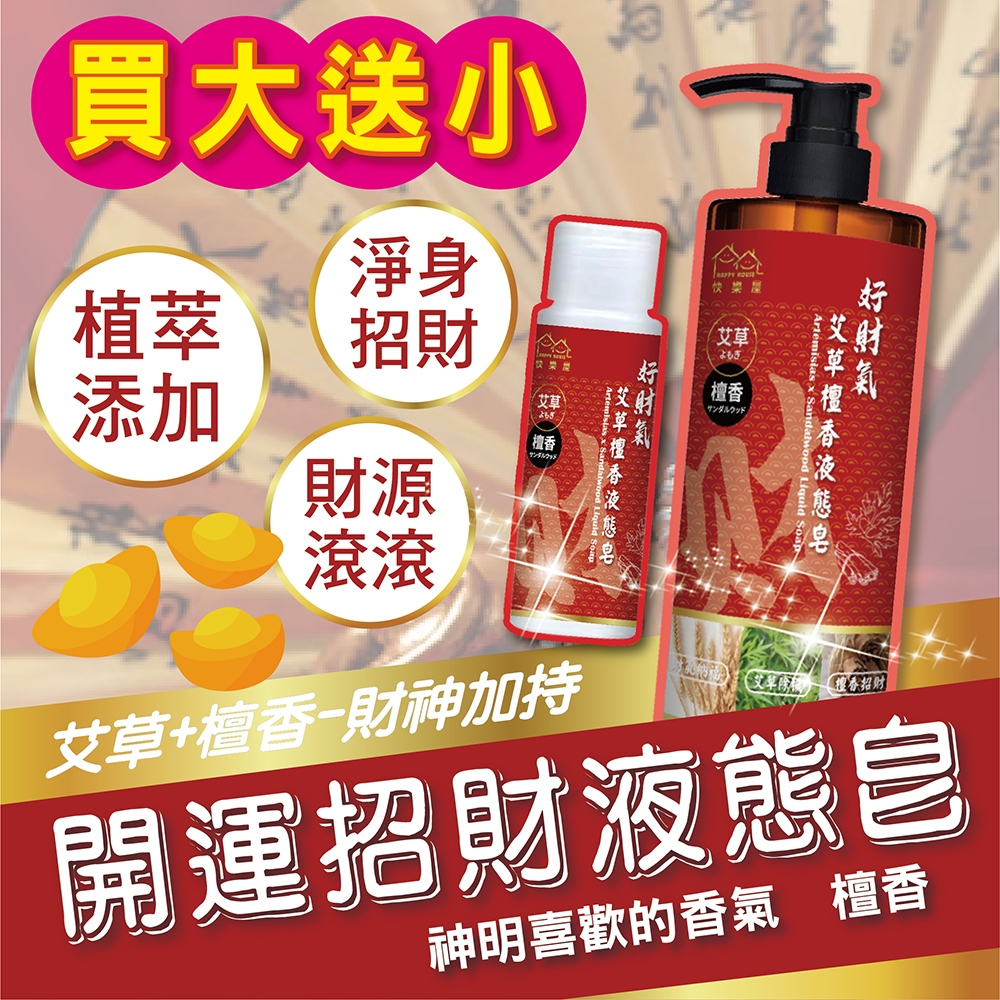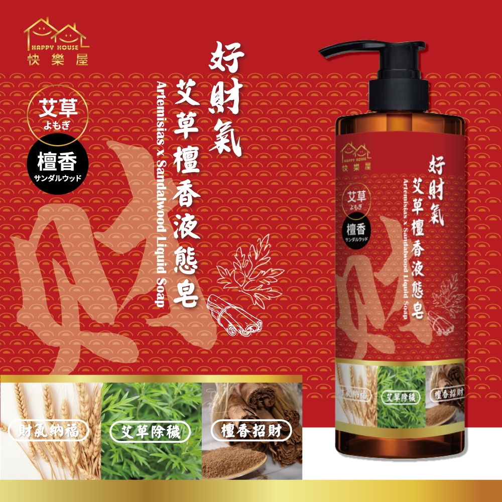 【HAPPY HOUSE】艾草檀香招財液態皂 500ML 檀香 招財 淨身 頭牙 財神爺喜歡買大送小(500ml送20ml)Body Wash & SoapHAPPY HOUSE 旗艦館