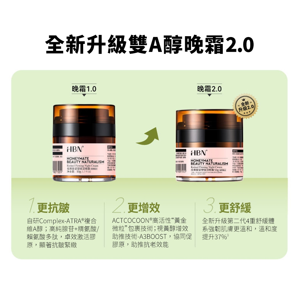 【HBN】視黃醇緊塑賦活晚霜 5g (雙A晚霜2.0)/緊緻/抗老/淡紋/淡斑/A醇/雙A酯/菸鹼醯胺/積雪草/溫和視黃醇緊塑賦活晚霜 5g|視黃醇緊塑賦活晚霜 5g 2入Facial MoisturizerHBN官方旗艦店