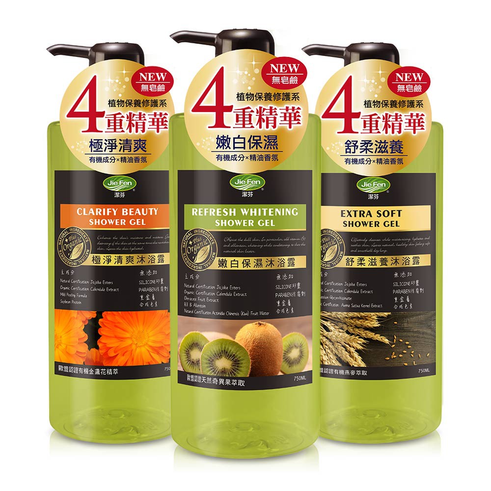【Jie Fen潔芬】植物修護沐浴露750ml8瓶/箱 團購【嫩白保濕/極淨清爽/舒柔滋養】添加歐盟認證有機成分極淨清爽沐浴乳-8瓶/箱|舒柔滋養沐浴乳-8瓶/箱|嫩白保濕沐浴乳-8瓶/箱Body Wash & SoapJie Fen潔芬官方旗艦店