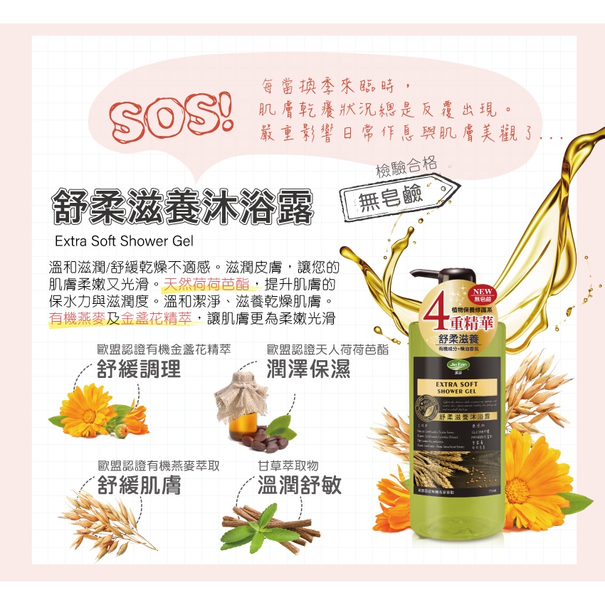 【Jie Fen 潔芬】植物舒柔滋養沐浴露 750ml|無添加矽靈 × 歐盟認證有機成分|6週年限定特價中!【Jie Fen 潔芬】植物舒柔滋養沐浴露 750ml|無添加矽靈 × 歐盟認證有機成分|6週年限定特價中!Body Wash & SoapJie Fen潔芬官方旗艦店