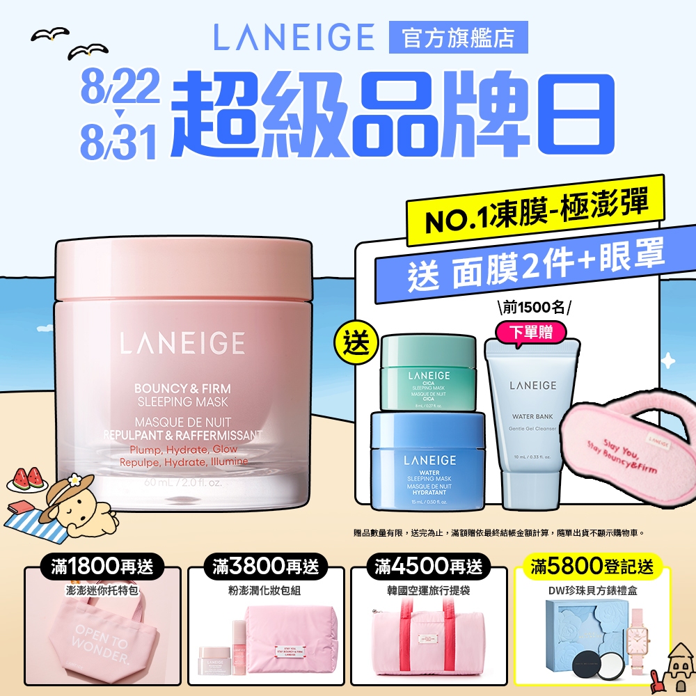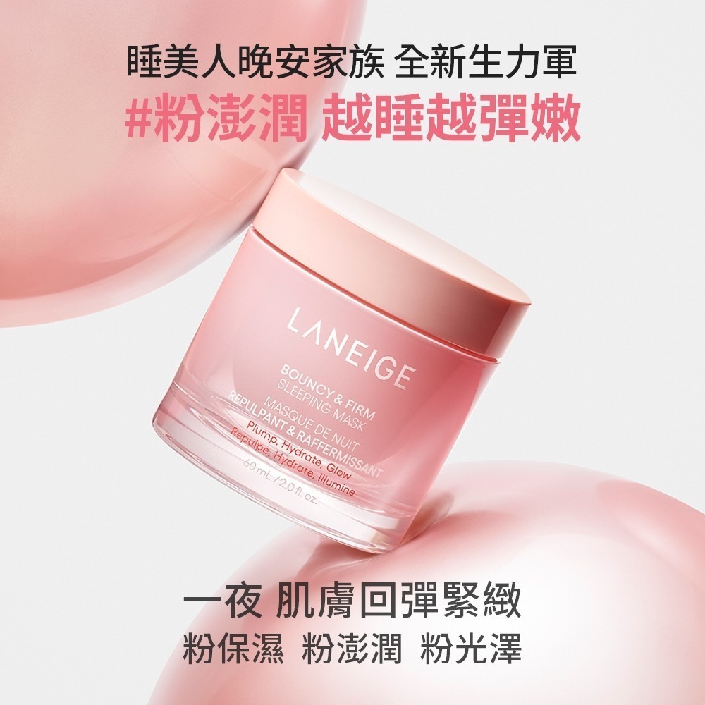 LANEIGE 蘭芝 粉澎彈加倍組 粉澎潤睡美人晚安面膜60mlx2 保濕 膠原蛋白 凍膜 韓國面膜 官方旗艦店買2送1正貨量+眼罩紓壓球|60ml*2-送眼唇4入+面膜刷Face Mask & PacksLANEIGE 蘭芝 官方旗艦店
