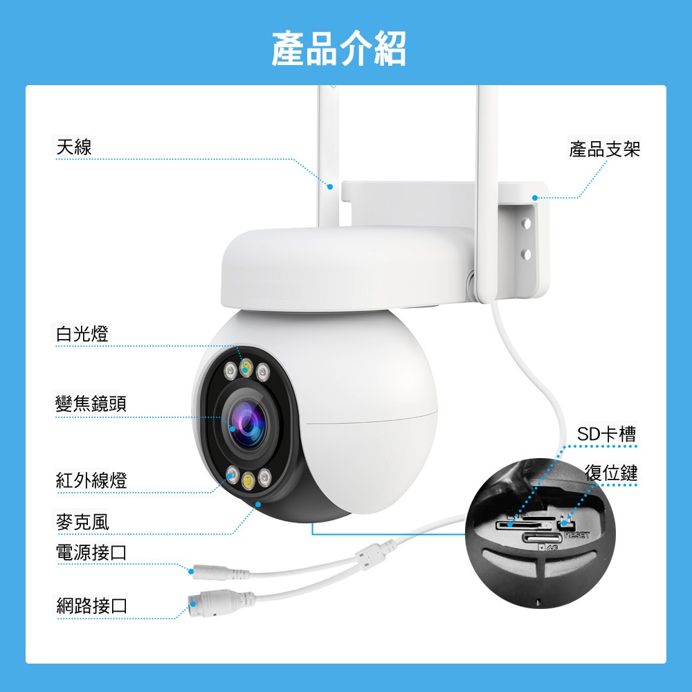 【宇晨I-Family】四百萬畫素 5倍變焦 雙向對講 AI人型偵測 星光全彩夜視 戶外防水 無線網路監視器單買鏡頭|鏡頭+128GBDVRsI-Family