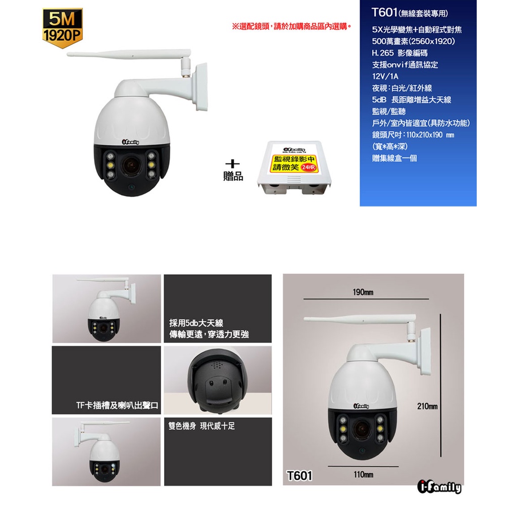 I-Family ES系列 套裝專用監視器 兩年保固 五百萬畫 5倍光學變焦 戶外防水型 金屬機殼 旋轉鏡頭I-Family ES系列 套裝專用監視器 兩年保固 五百萬畫 5倍光學變焦 戶外防水型 金屬機殼 旋轉鏡頭DVRsI-Family
