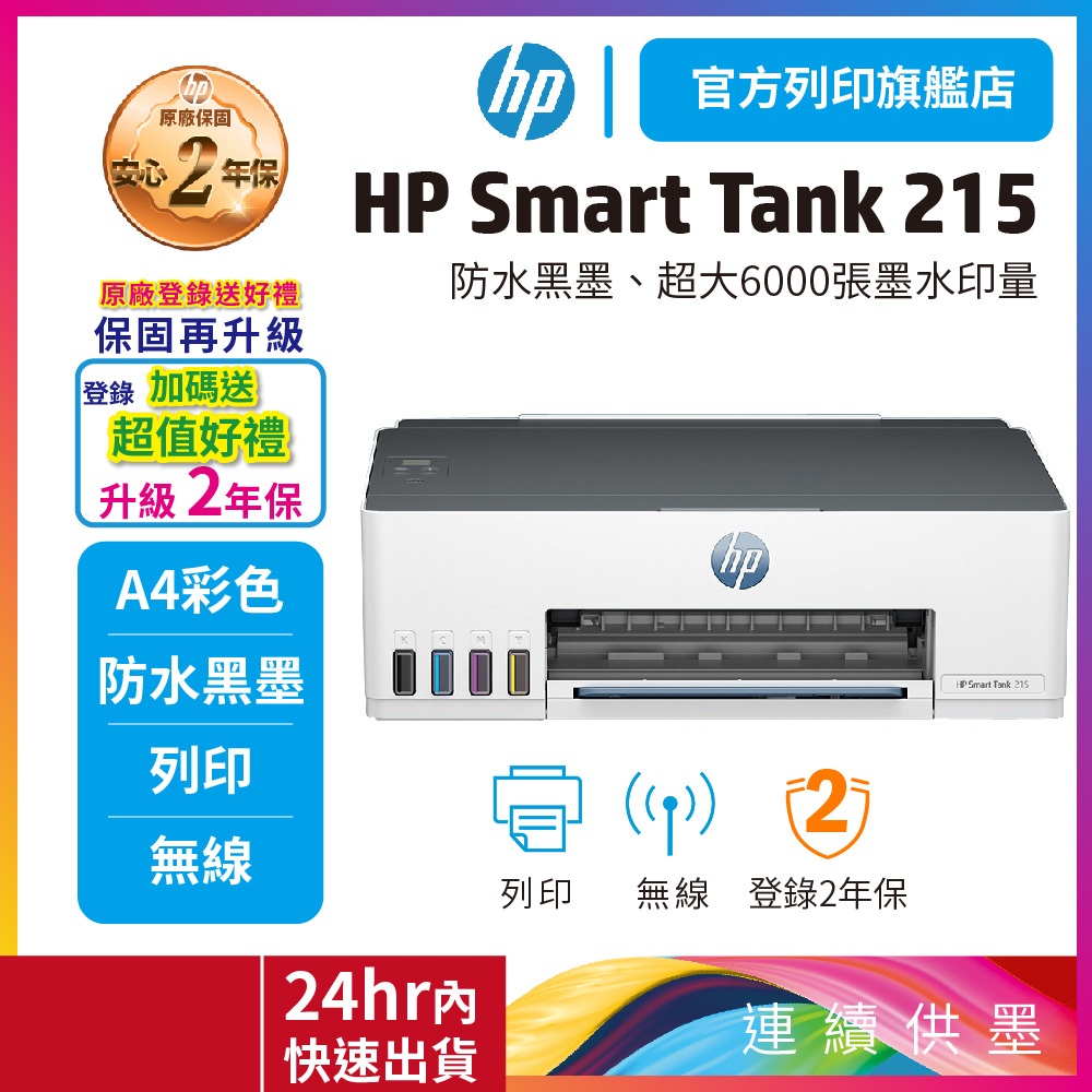 HP正原廠 Smart Tank 215【加碼回饋10%蝦幣】連續供墨 單功能印表機 適用耗材GT53XL/GT52優惠登錄加碼送好禮+升級2年保Printers, Scanners & Photocopy MachinesHP惠普官方列印旗艦館 家用 | 商用列印方案