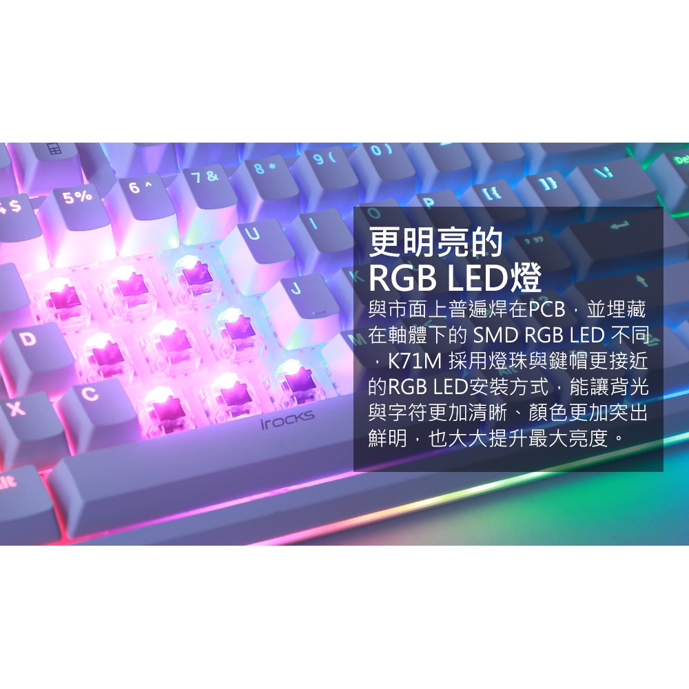 irocks K71M RGB 背光白色機械式鍵盤-Gateron軸-PBT鍵帽青軸|茶軸|紅軸Keyboardsirocks 艾芮克官方授權網路旗艦店