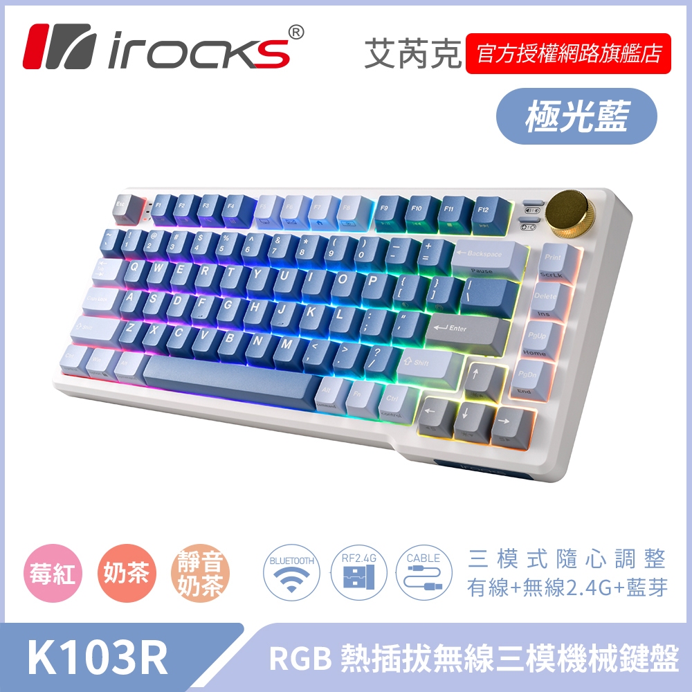 irocks K103R 三模 藍芽 機械式鍵盤-熱插拔 自有軸 極光藍莓紅軸|奶茶軸|靜音奶茶軸Keyboardsirocks 艾芮克官方授權網路旗艦店