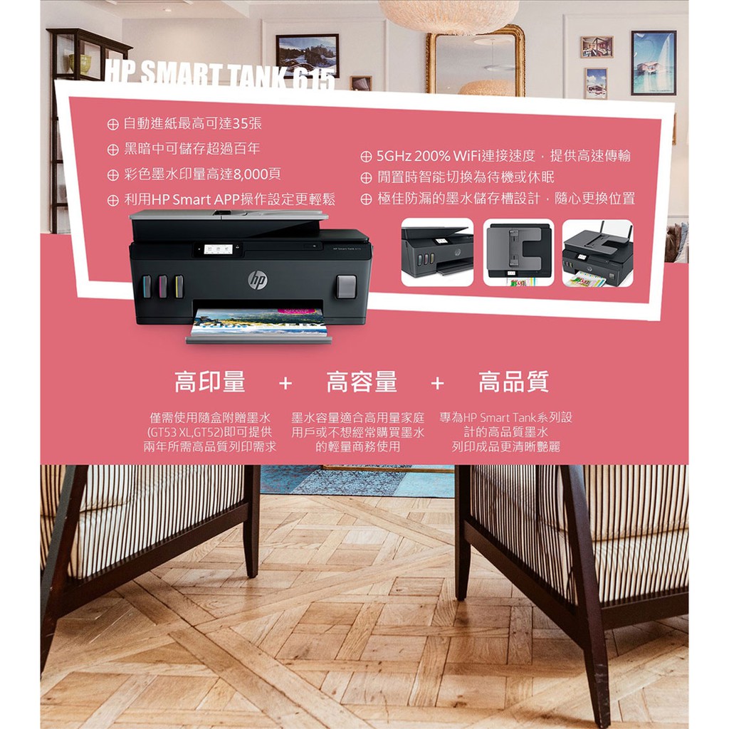 HP 惠普 Smart Tank 615 連供 連續供墨 傳真 多功能 事務機 登錄送1千元禮券(詳請請參閱內文)單機|原廠登錄活動-主機金額不得低於7490元Printers, Scanners & Photocopy MachinesHP惠普品牌旗艦店