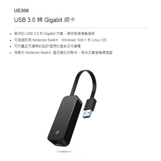 TP-Link UE306 USB3.0 轉 RJ45 Gigabit 外接網卡 乙太網路 支援Switch【JT3C】TP-Link UE306 USB3.0 轉 RJ45 Gigabit 外接網卡 乙太網路 支援Switch【JT3C】Modems & Wireless RoutersJT3C 電競旗艦館
