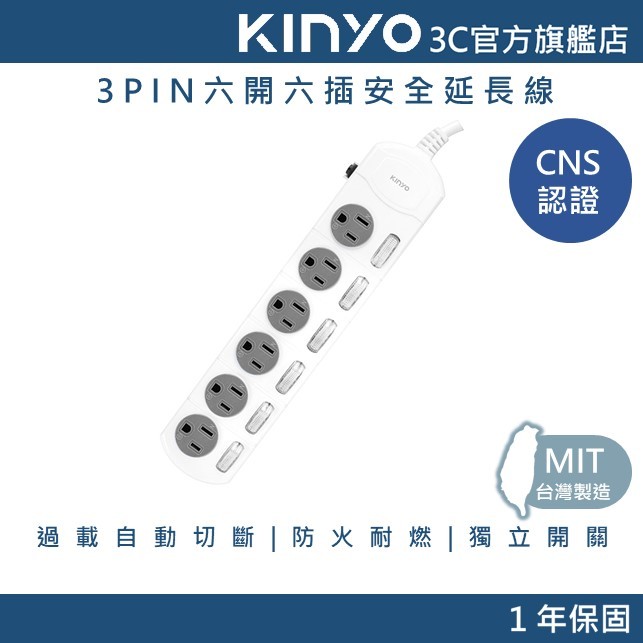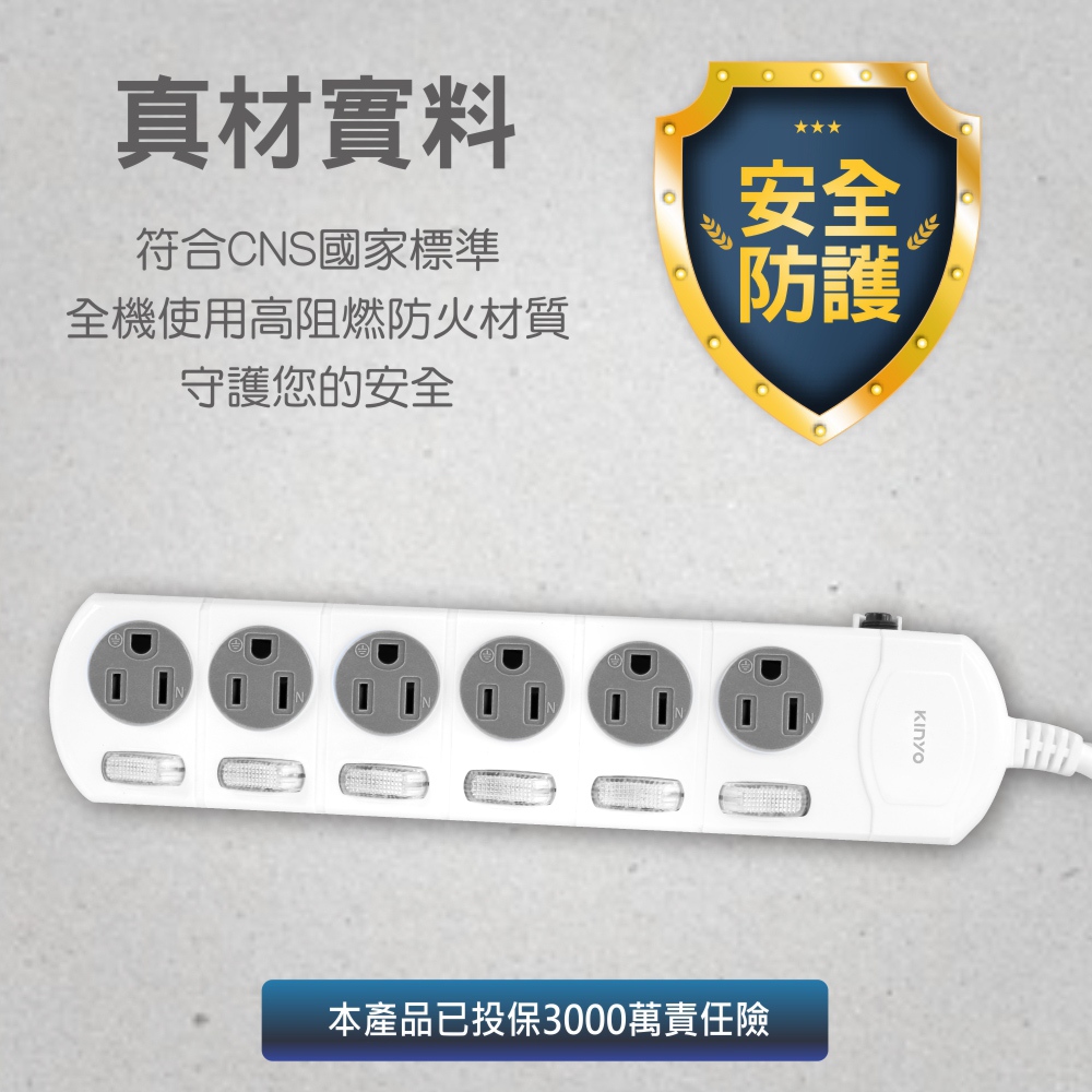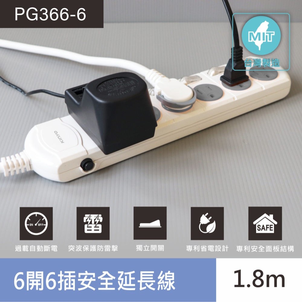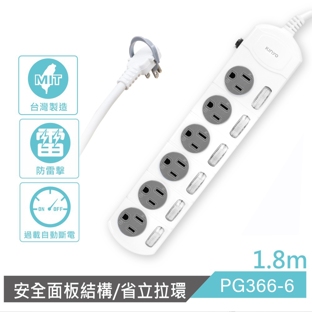 【KINYO官方直營】3PIN六開六插安全延長線(PG-3666) 6呎PG-3666 六開六插_6呎Powerline AdaptersKINYO官方旗艦店_3C館