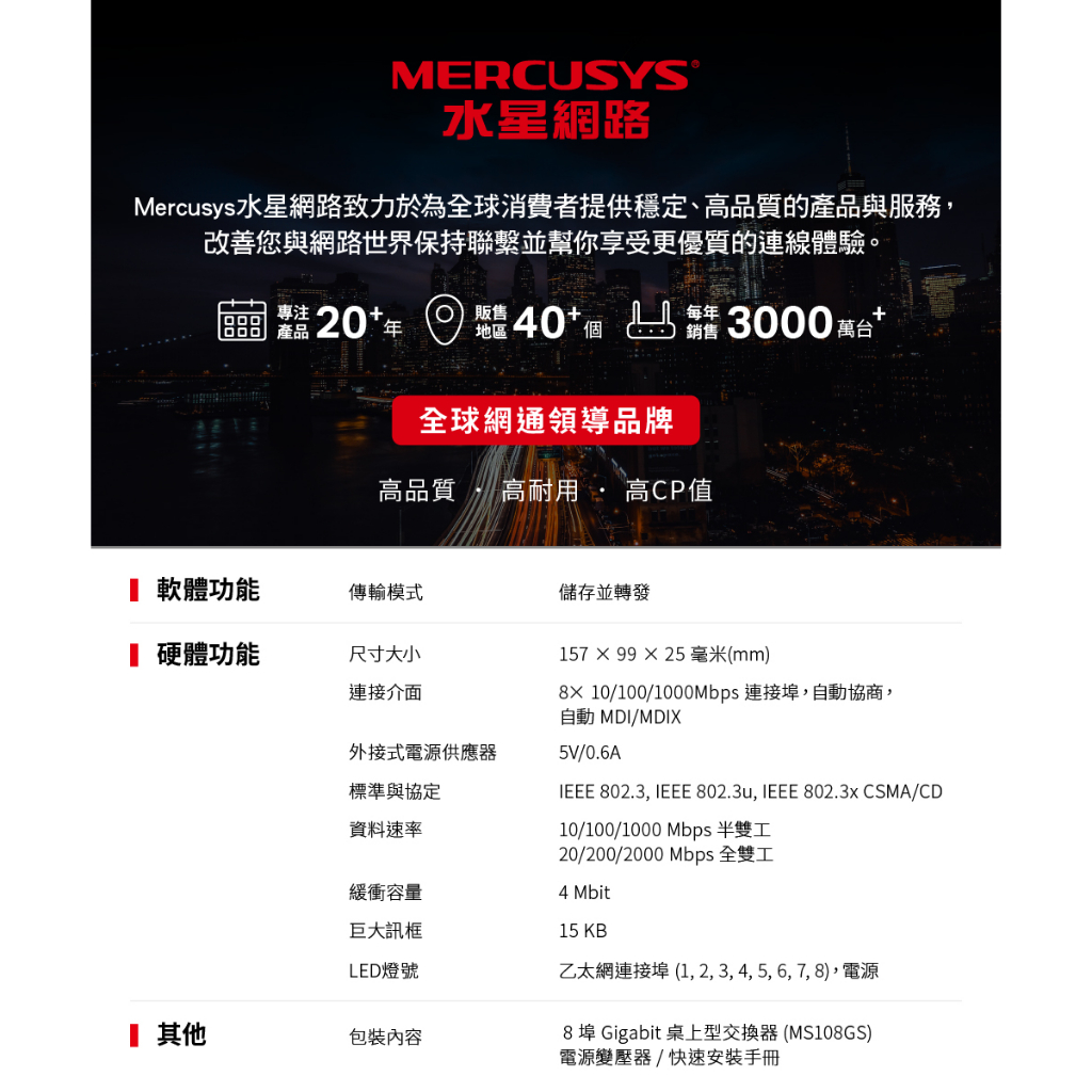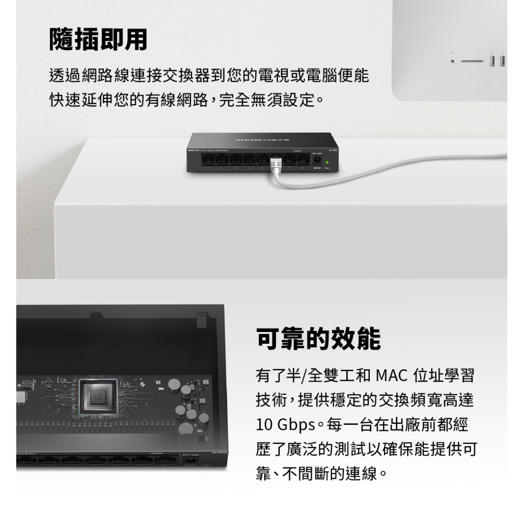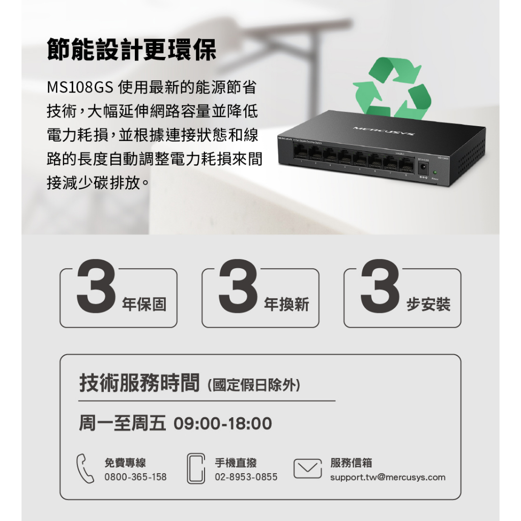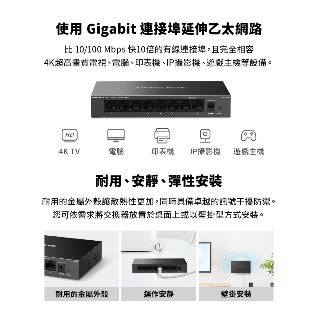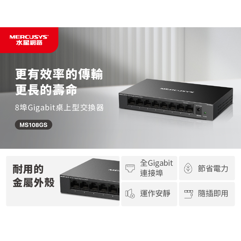 Mercusys水星網路 MS108GS 8埠 Gigabit 桌上型交換器 金屬外殼 隨插即用MS108GS|【福利品】MS108GSNetwork Switches & PoEMercusys水星 官方旗艦店