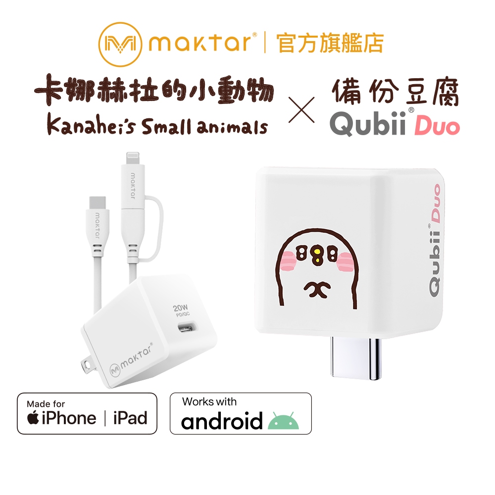 Maktar Qubii Duo USB-C 備份豆腐 卡娜赫拉的小動物〔 閃爍P助 大全配 〕蘋果安卓通用閃爍P助+20W+CCL傳輸線Flash Drives & OTGMaktar 口袋相簿 備份豆腐品牌官方旗艦店