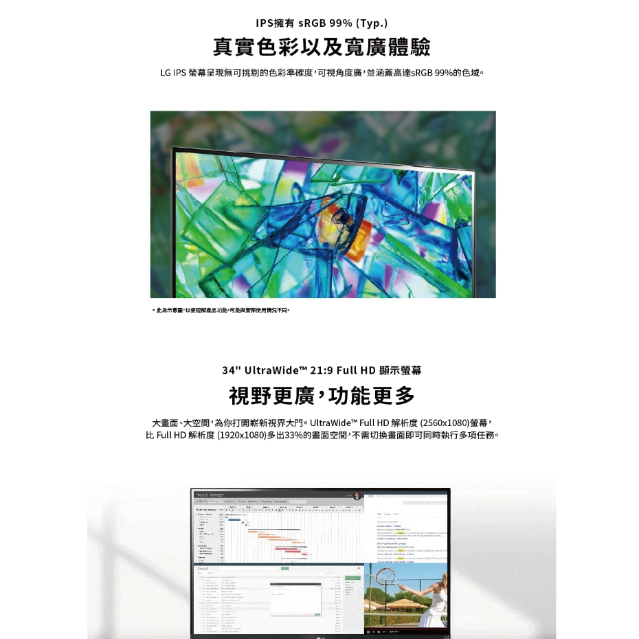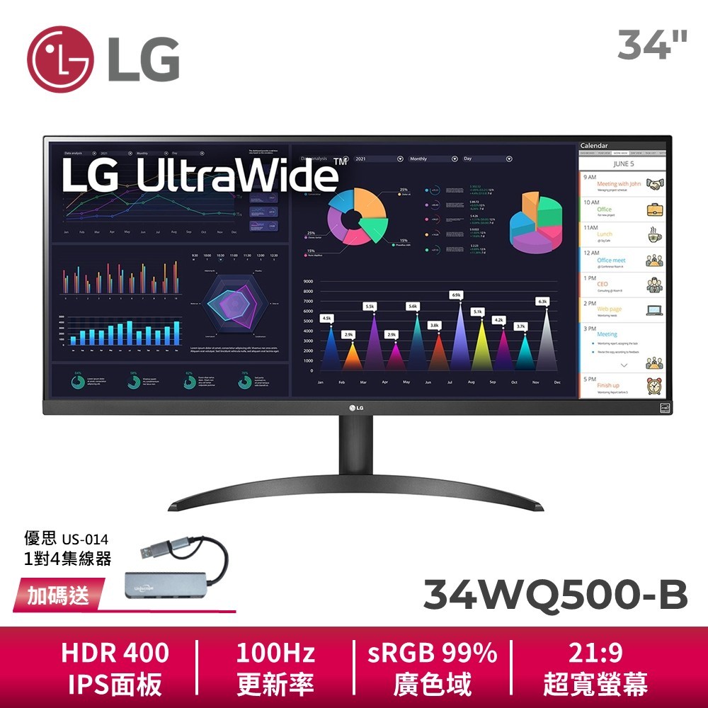 LG 34WQ500-B 34吋 21:9 IPS 智慧多工顯示器 HDR400 100Hz FreeSync 電腦螢幕螢幕單購LG 3C品牌旗艦館