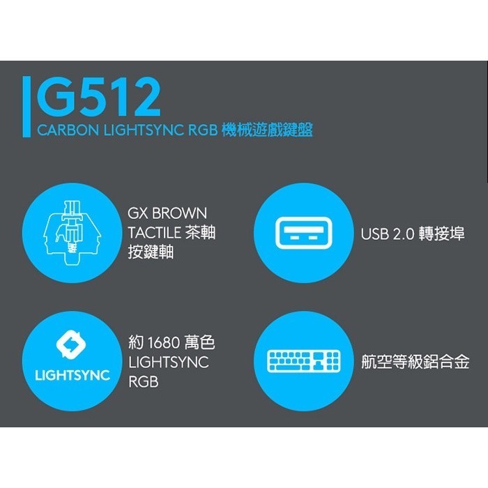Logitech G 羅技 G512 CARBON RGB 機械遊戲鍵盤GX觸感軸|GX線性軸|青軸KeyboardsLogitech羅技官方旗艦館