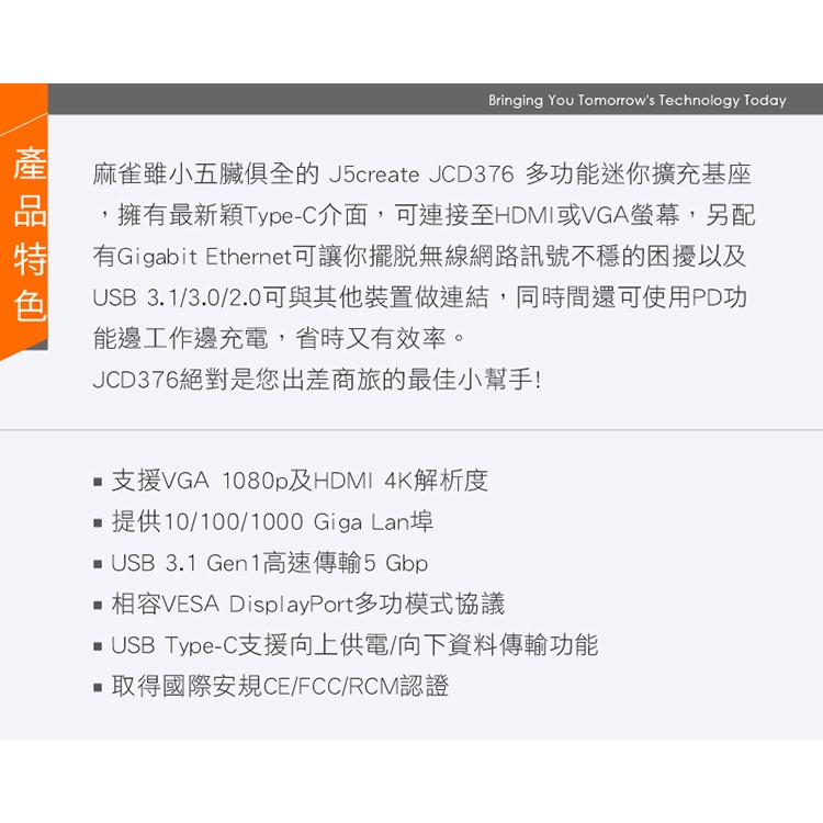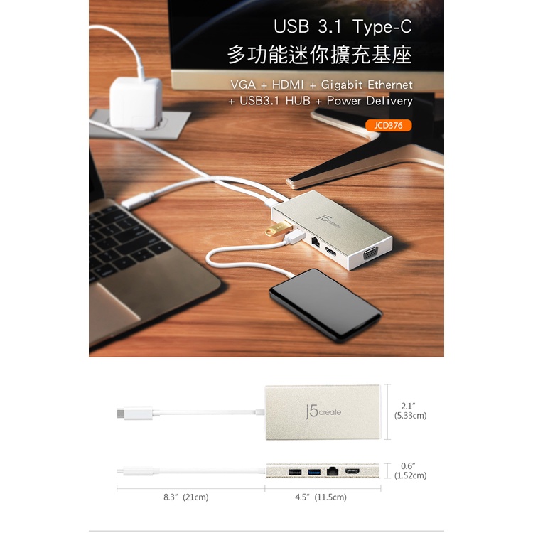 【j5create 凱捷】USB 3.1 Type-C多功能迷你擴充基座-JCD376 TypeC集線器/HUB/轉接器【j5create 凱捷】USB 3.1 Type-C多功能迷你擴充基座-JCD376 TypeC集線器/HUB/轉接器Modems & Wireless Routersj5create 凱捷