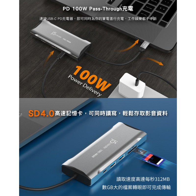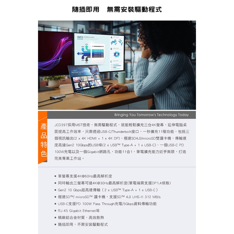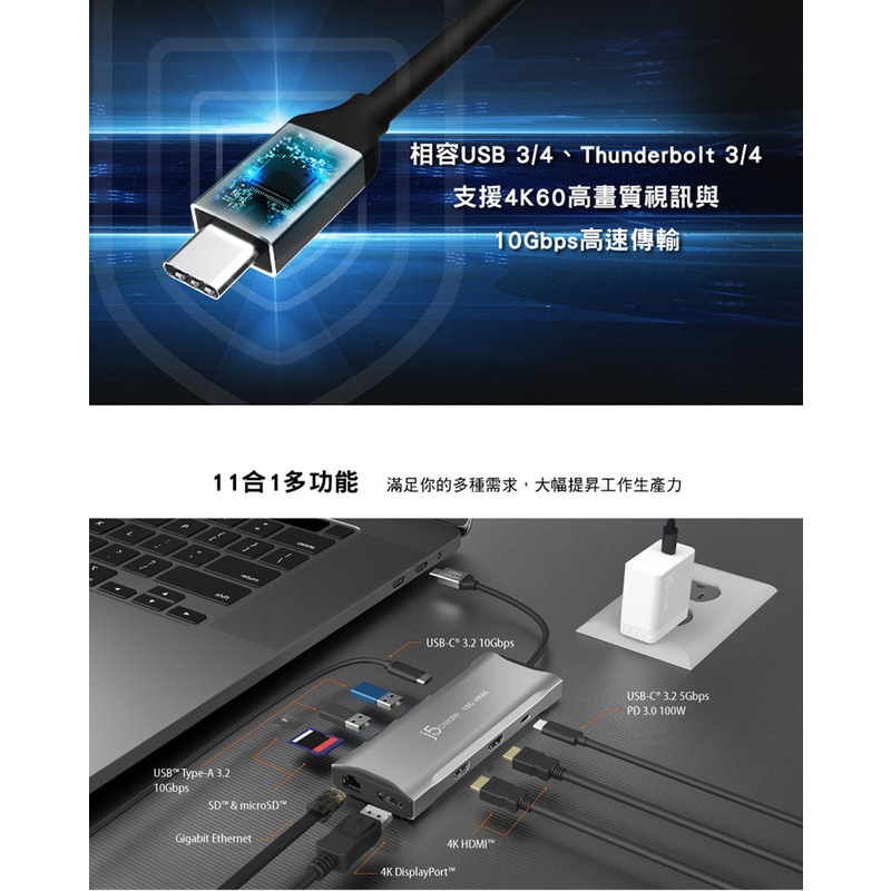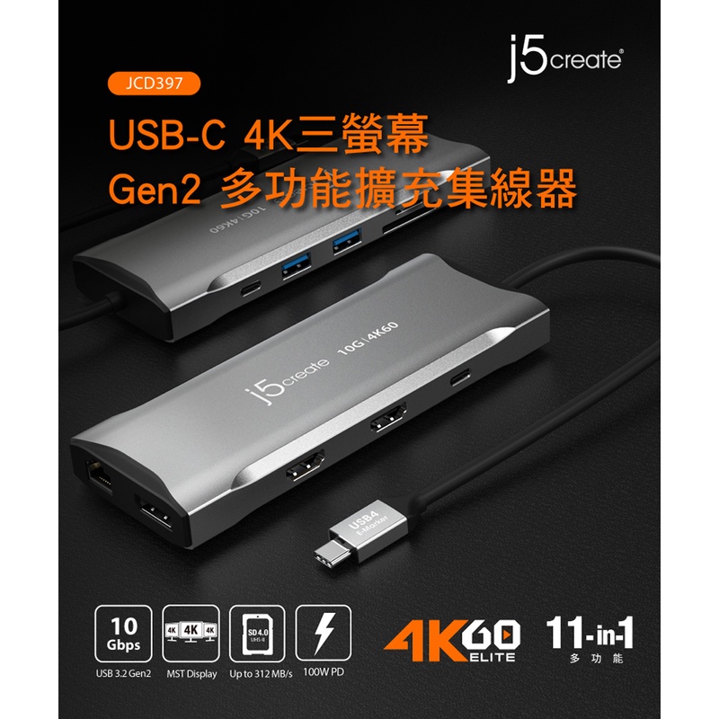 【j5create 凱捷】USB-C MST 4K60三螢幕/Gen2高速11合1多功能擴充集線器Hub-JCD397【j5create 凱捷】USB-C MST 4K60三螢幕/Gen2高速11合1多功能擴充集線器Hub-JCD397Othersj5create 凱捷