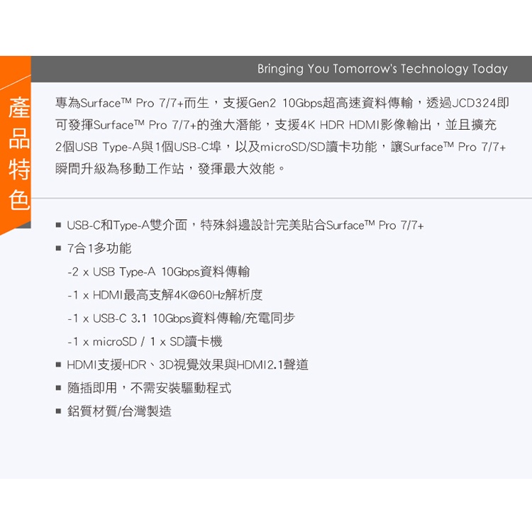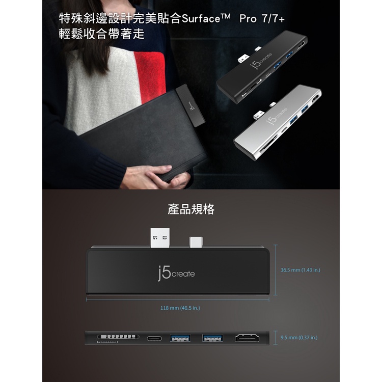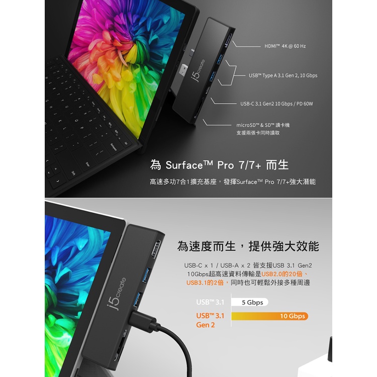 【j5create 凱捷】Surface Pro 7 / 7+專用 Gen2二代超高速多功能擴充基座 -JCD324黑【j5create 凱捷】Surface Pro 7 / 7+專用 Gen2二代超高速多功能擴充基座 -JCD324黑Othersj5create 凱捷