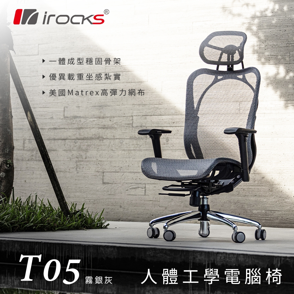 irocks T05 人體工學 辦公椅 電腦椅 網椅-霧銀灰本島|金門|澎湖Othersirocks 艾芮克官方授權網路旗艦店