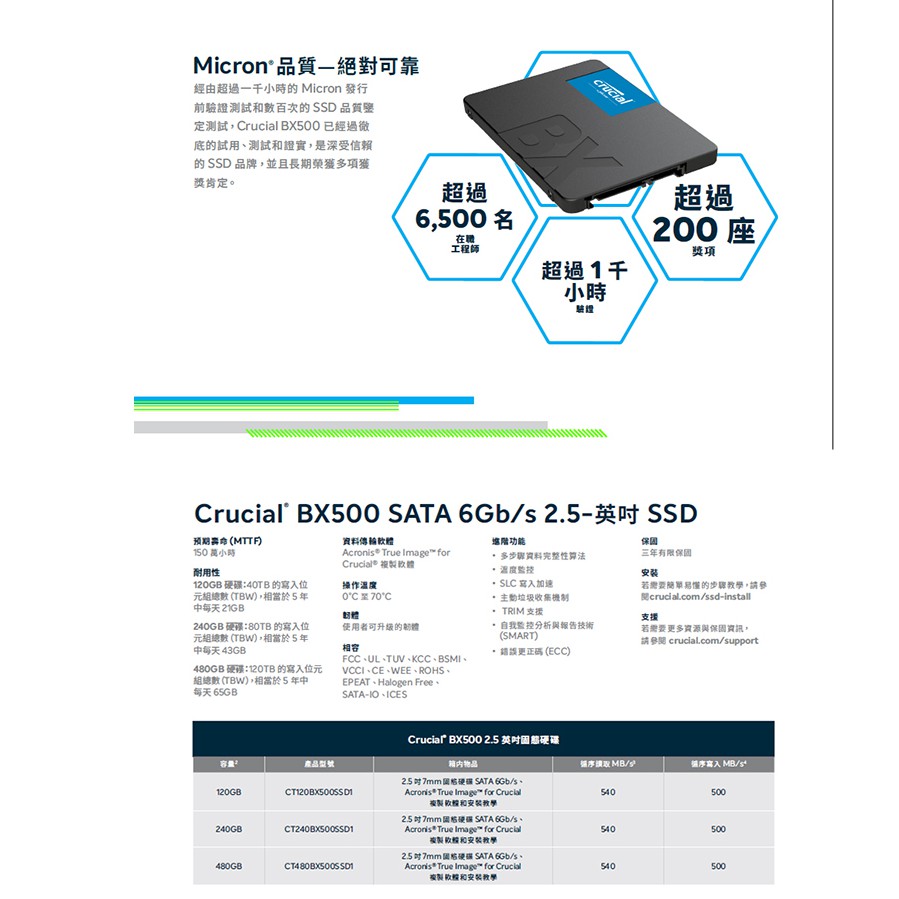 Micron美光 Crucial BX500 240G 500G 1TB 2.5吋/TLC/SSD固態硬碟240G|500G|1TBSSDJT3C 電競旗艦館