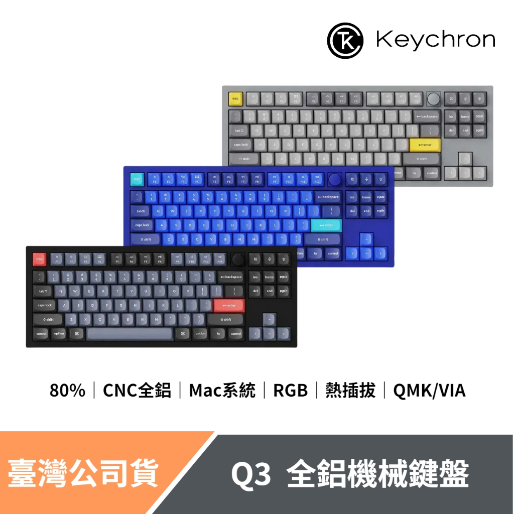 Keychron Q3 80% 全鋁機械鍵盤 可自訂旋鈕 QMK/VIA 熱插拔 RGB Mac/Win適用海軍藍(含旋鈕),G Pro紅軸(45g/線性)|銀灰色,G Pro青軸(55g/清脆段落)|海軍藍,G Pro青軸(55g/清脆段落)|銀灰色,G Pro紅軸(45g/線性)|海軍藍,G Pro茶軸(55g/段落)|海軍藍(含旋鈕),G Pro青軸(55g/清脆段落)|銀灰色,G Pro茶軸(55g/段落)|海軍藍,G Pro紅軸(45g/線性)|海軍藍(含旋鈕),G Pro茶軸(55g/段落)KeyboardsKeychron臺灣官方旗艦店