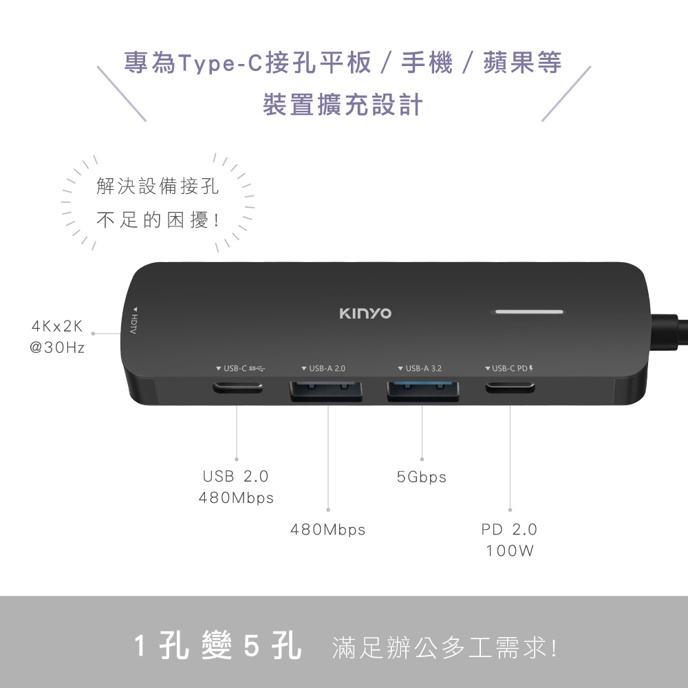 〖KINYO〗 五合一多功能擴充座 (KCR) PD 100W快充輸入 HDMI 4K輸出 Mac/PC可用KCR415 讀卡機USB Hubs & Card ReadersKINYO官方旗艦店_家電館