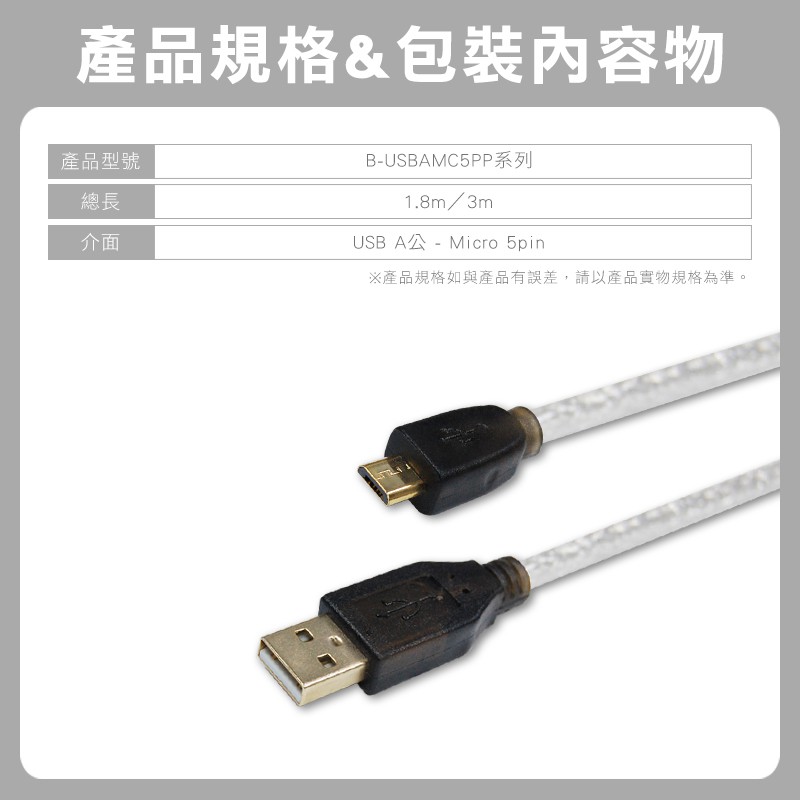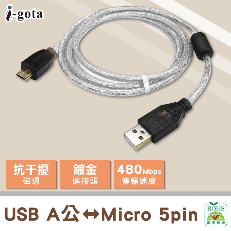USB-A to Micro USB 2.0 連接線, 雙層屏蔽, 磁環, 鍍金頭高速傳輸線, 認證規格, UL27251.8m|3mNetwork Cables & Connectorsi-gota官方旗艦館|昶興電子