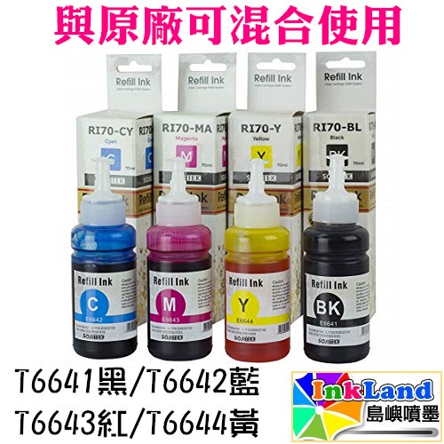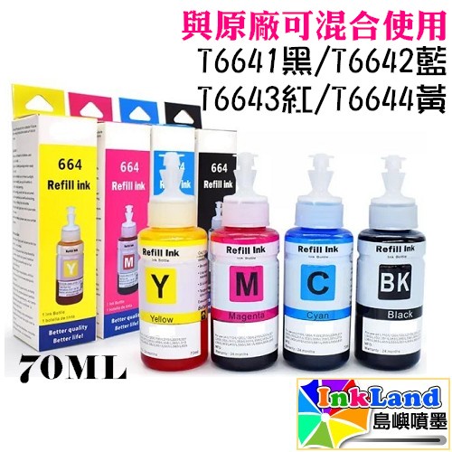EPSON T6641 / T6642 / T6643 / T6644 黑藍紅黃 全新副廠相容墨水組合T6641-T6644一組四色|T6641黑|T6644黃|T6642藍|T6643紅Inks & TonersINKLAND島嶼噴墨/雷射