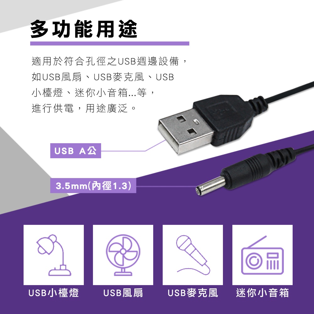 USB 線 頭 A公 DC Plug 3.5外徑x1.35內徑 內正外負 USB電源線 放大器 訊號延伸 供電線80公分|120公分Network Cables & Connectorsi-gota官方旗艦館|昶興電子