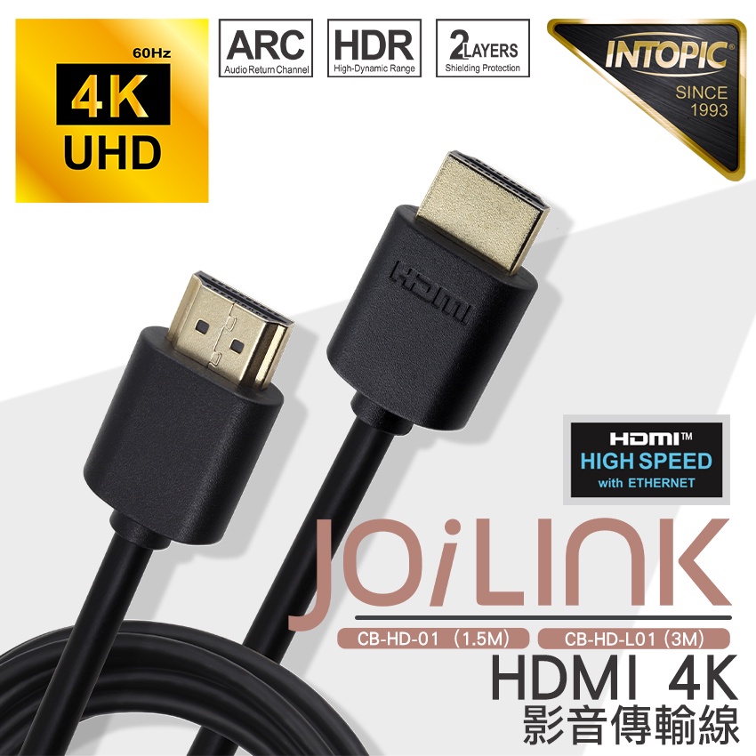 【Intopic】HD-01 HDMI 2.0 4K60 雙層屏蔽 影音傳輸線 1.5米 支援網路功能【Intopic】HD-01 HDMI 2.0 4K60 雙層屏蔽 影音傳輸線 1.5米 支援網路功能Network Cables & ConnectorsIntopic廣鼎國際 | 官方3C旗艦館