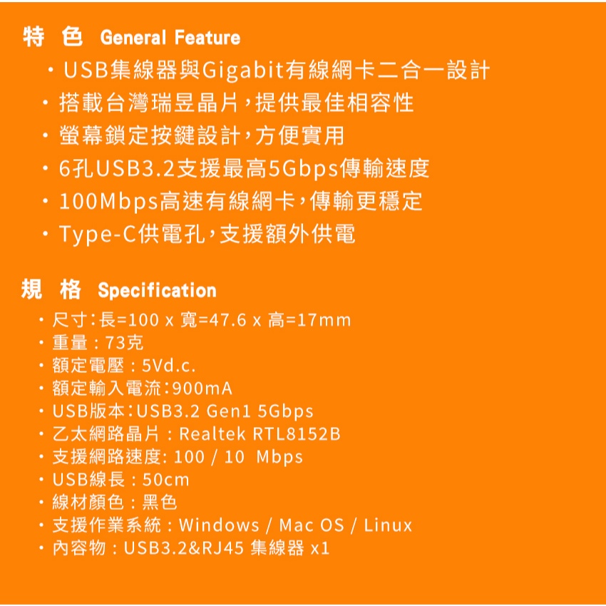【Intopic】HB-790 六埠 USB3.2&RJ45集線器 網卡【Intopic】HB-790 六埠 USB3.2&RJ45集線器 網卡Network Cables & ConnectorsIntopic廣鼎國際 | 官方3C旗艦館
