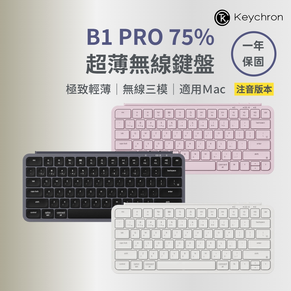 Keychron B1 Pro 75% 超薄無線鍵盤 適用Mac/Win 超長續航 網頁驅動改鍵 注音版本 送保護膜深空灰,注音版本|花粉紅,注音版本|象牙白,注音版本KeyboardsKeychron臺灣官方旗艦店