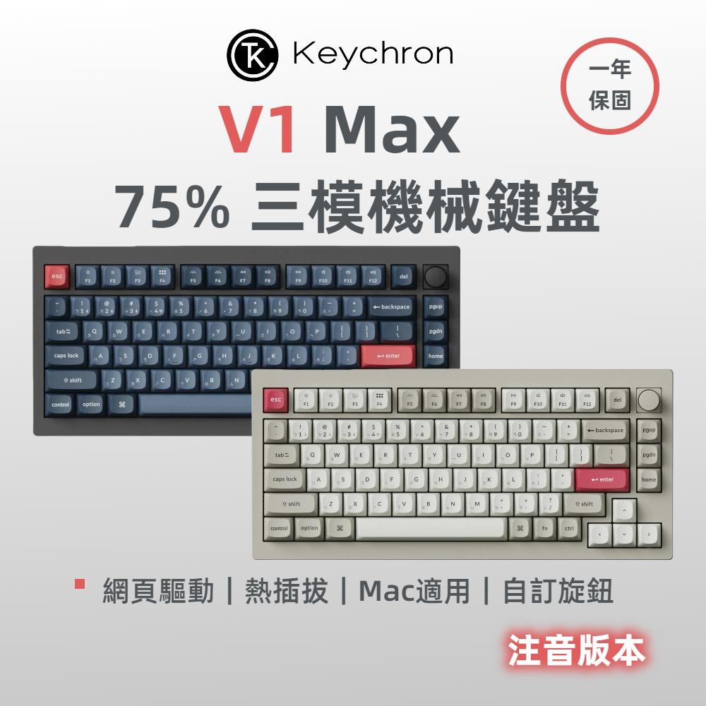 Keychron V1 Max 75% 無線機械鍵盤(含旋鈕) 適用Mac 2.4G 藍牙 RGB 熱插拔 注音版本黑紅配色,紅軸(線性)|黑紅配色,香蕉軸(提前大段落)|復古色(限定版),紅軸(線性)|復古色(限定版),茶軸(段落)|黑紅配色,茶軸(段落)|復古色(限定版),香蕉軸(提前大段落)KeyboardsKeychron臺灣官方旗艦店