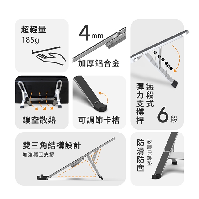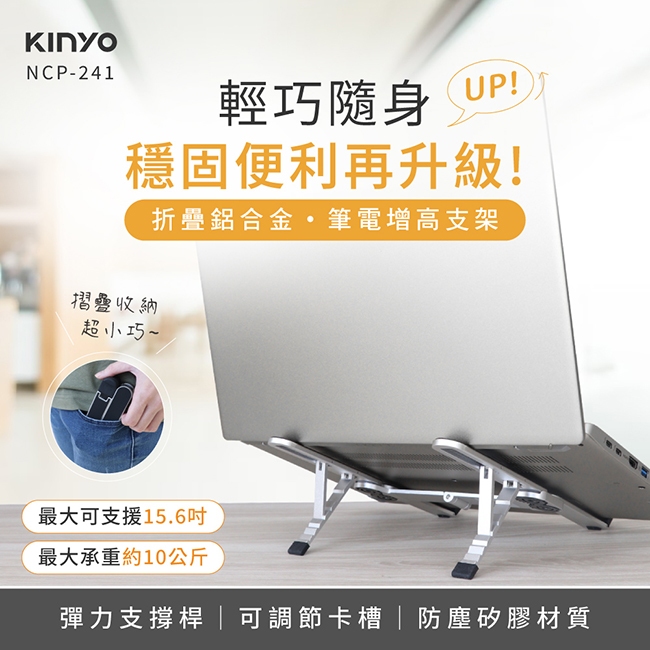 【KINYO官方直營】輕巧隨身折疊 鋁合金筆電增高支架 (NCP) 六段調節 15.6吋以下筆電 散熱架 增高支架NCP241 折疊鋁合金筆電增高支架Laptop Stands & Foldable Laptop DesksKINYO官方旗艦店_3C館