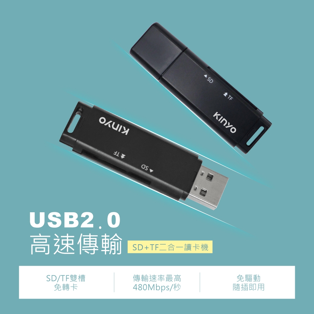【KINYO官方直營】SD+TF雙卡槽迷你讀卡機(KCR)KCR218 迷你雙槽讀卡機USB Hubs & Card ReadersKINYO官方旗艦店_3C館