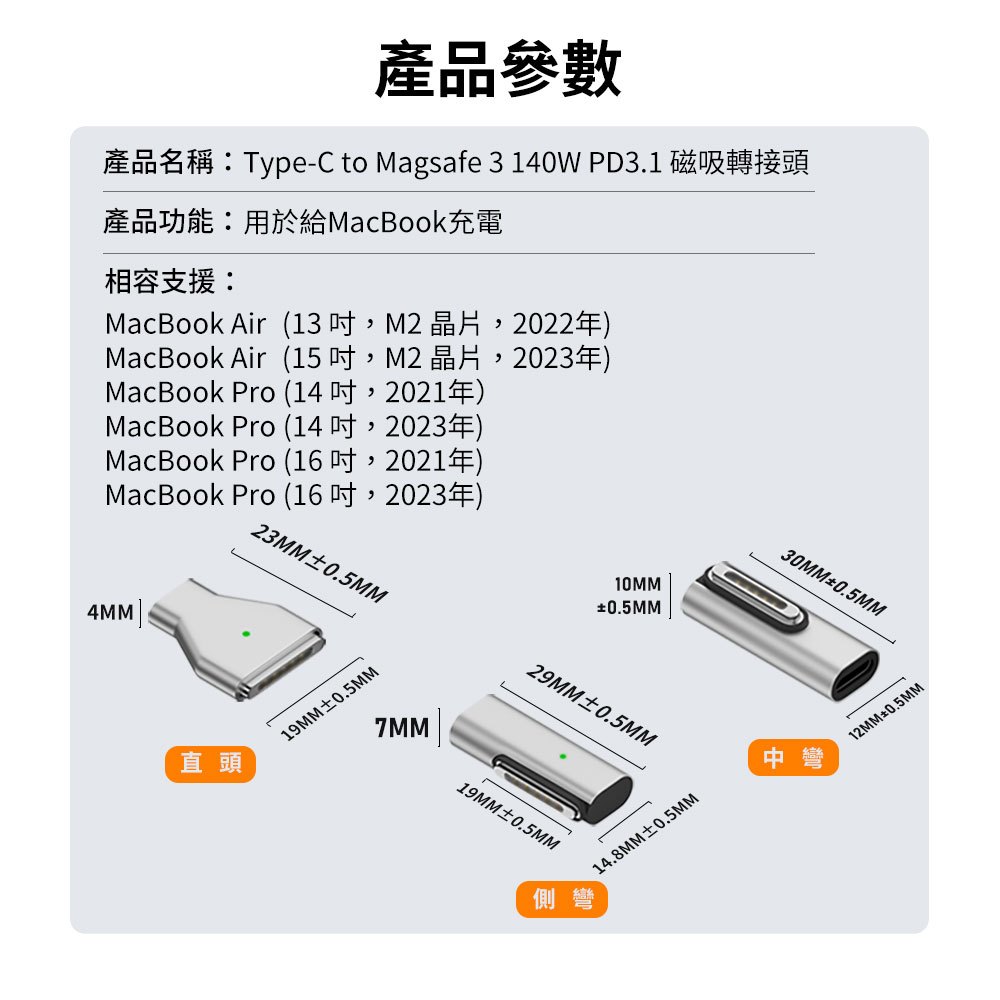 Kamera Type-C母 轉 Magsafe 3公 140W轉接頭 28V/5A Macbook Air Pro中彎轉接頭|側彎轉接頭|直頭轉接頭Laptop Chargers & AdaptorsKamera 佳美能旗艦館