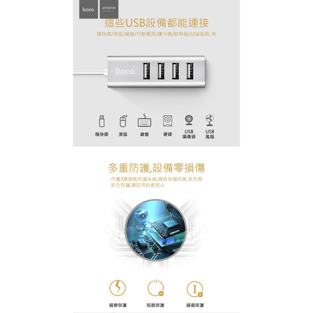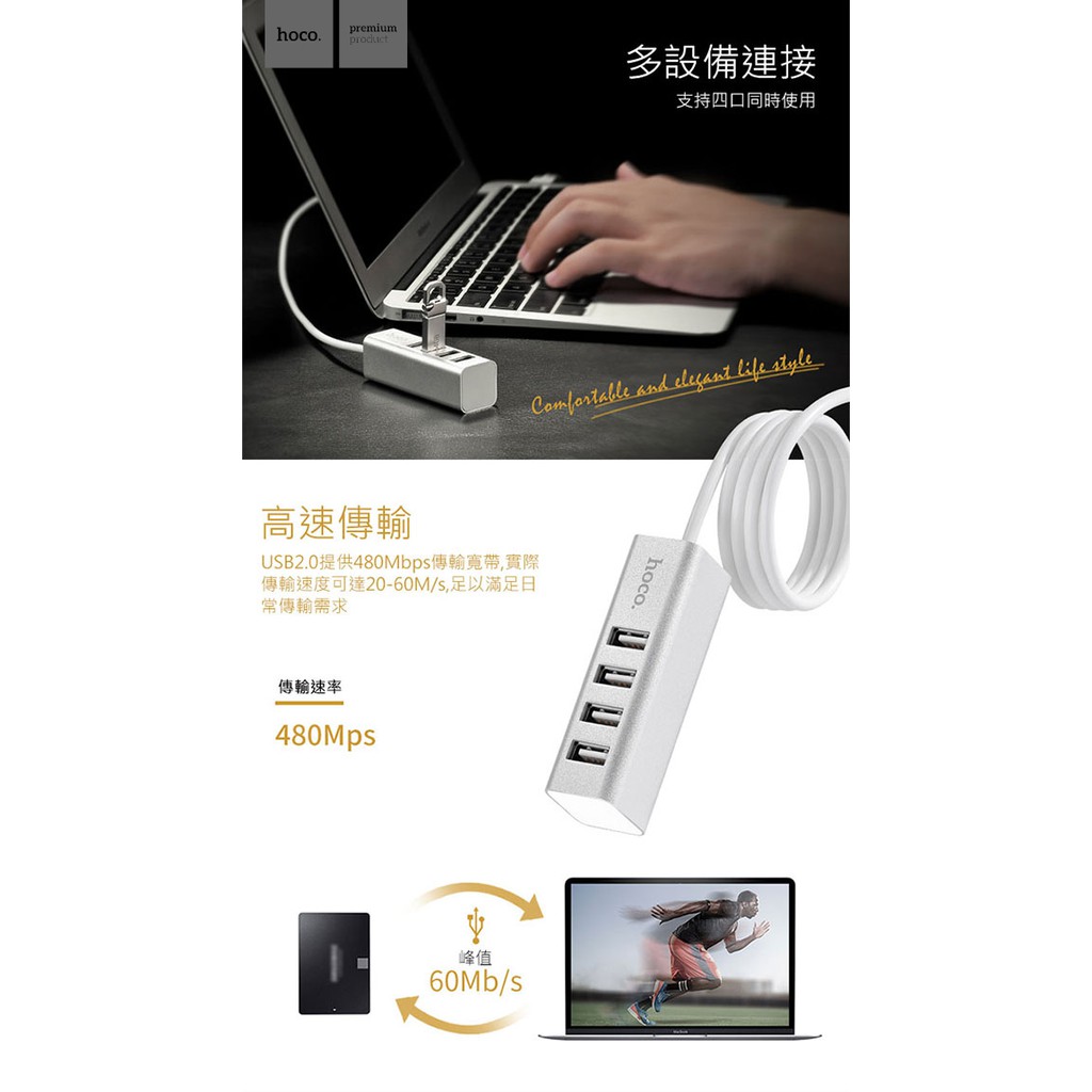 hoco. 浩酷 HB1 四口USB分線器 高速四口USB分線器 USB轉換器 hub擴展otg集線器 【酷瘋】錆色|銀色Network Cables & Connectorshoco. 浩酷 & Borofone 菠蘿瘋