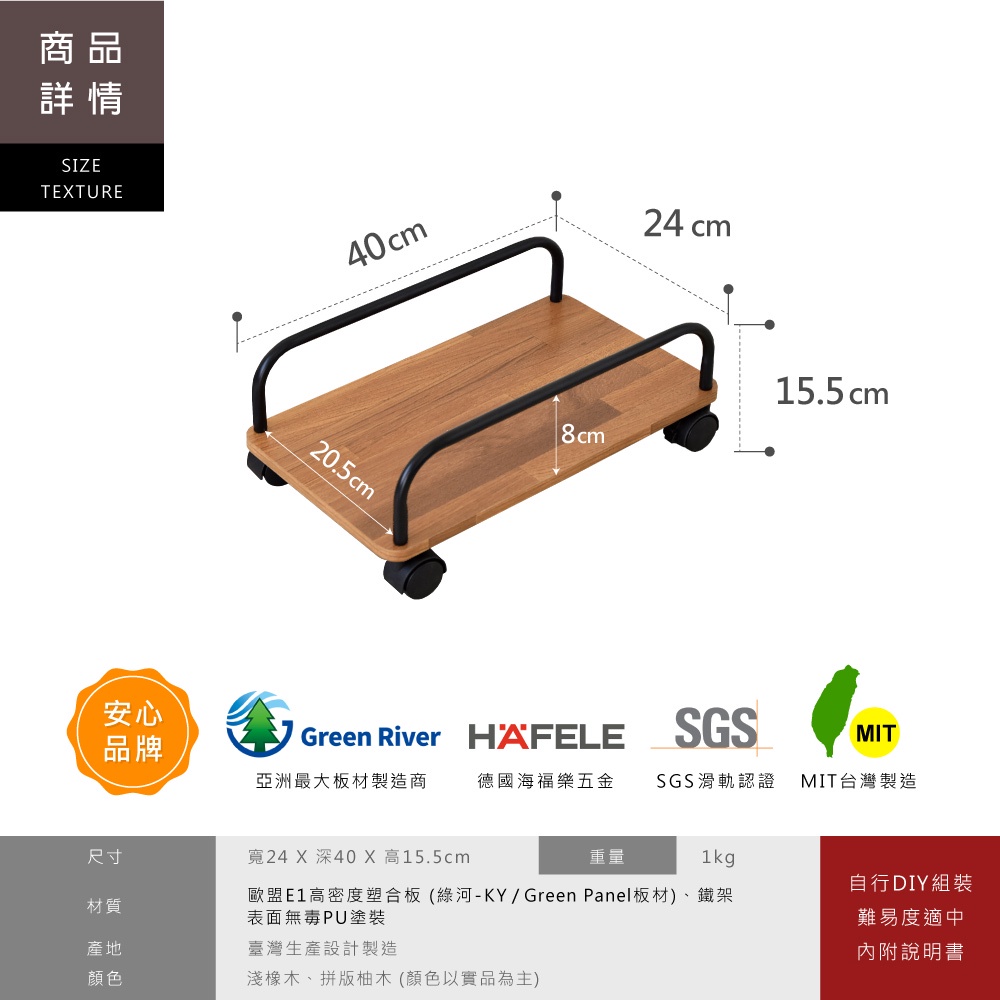 HOPMA移動式電腦主機架(多入) 台灣製造 散熱架 展示架 活動拖架 增高架 煞車滑輪E-5701&E-5702淺橡(漂流)木|拼版柚木|淺橡(漂流)木(一組2入)|拼版柚木(一組2入)OthersHOPMA 合馬家具