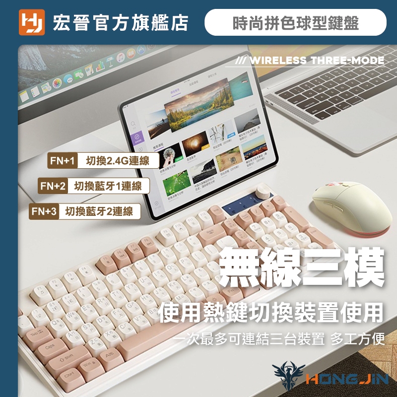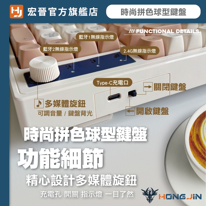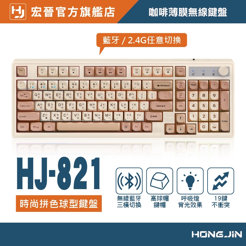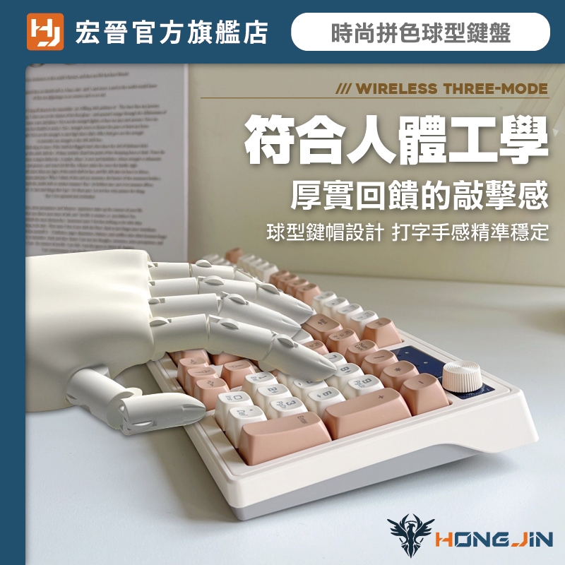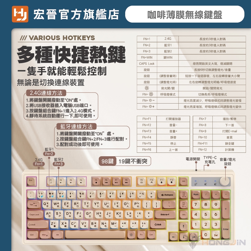 宏晉 咖啡薄膜無線鍵盤 三模無線連線 19鍵無衝突 球型鍵帽 旋鈕控制 Type-C 呼吸背光 一鍵切換 辦公遊戲雙享焦糖棕|石墨黑|海鹽柑糖|黑莓KeyboardsHONG JIN 宏晉 |3C資訊廣場