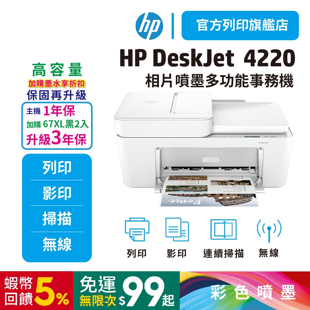 HP DeskJet 4220【加購高容量67XL兩入優惠升級3年保】【再送10%蝦幣】無線多功能彩色噴墨印表機組合優惠【3年保特惠組】單機+67XL黑 兩入Printers, Scanners & Photocopy MachinesHP惠普官方列印旗艦館 家用 | 商用列印方案